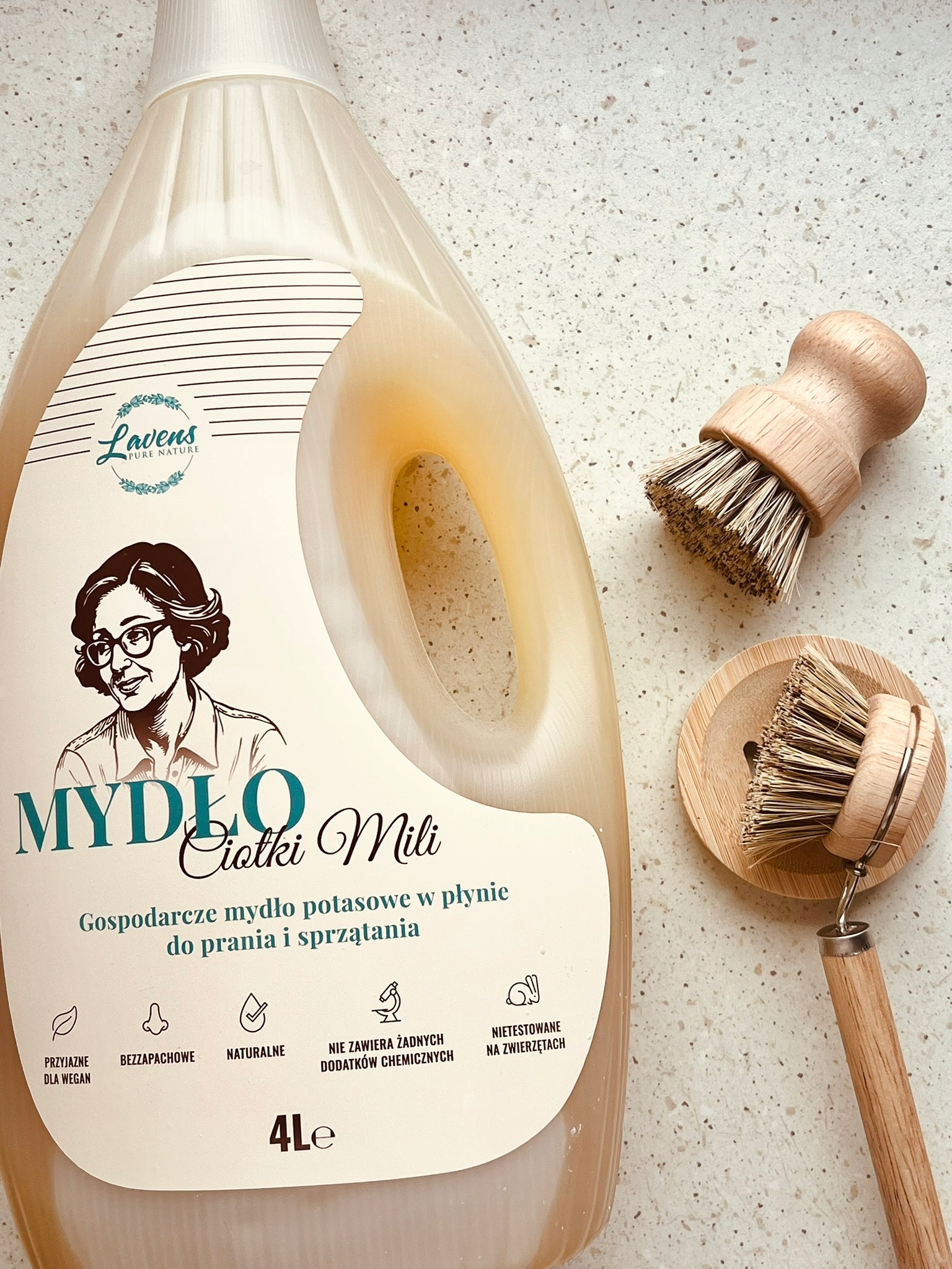 Натуральна сіра калієва мильна тітка Мілі - це унікальний продукт, створений за традиційними методами в Польщі . 100% вегани на основі ріпільної олії забезпечує простоту та чистоту, що відрізняє їх від фону хімічних засобів очищення. 4