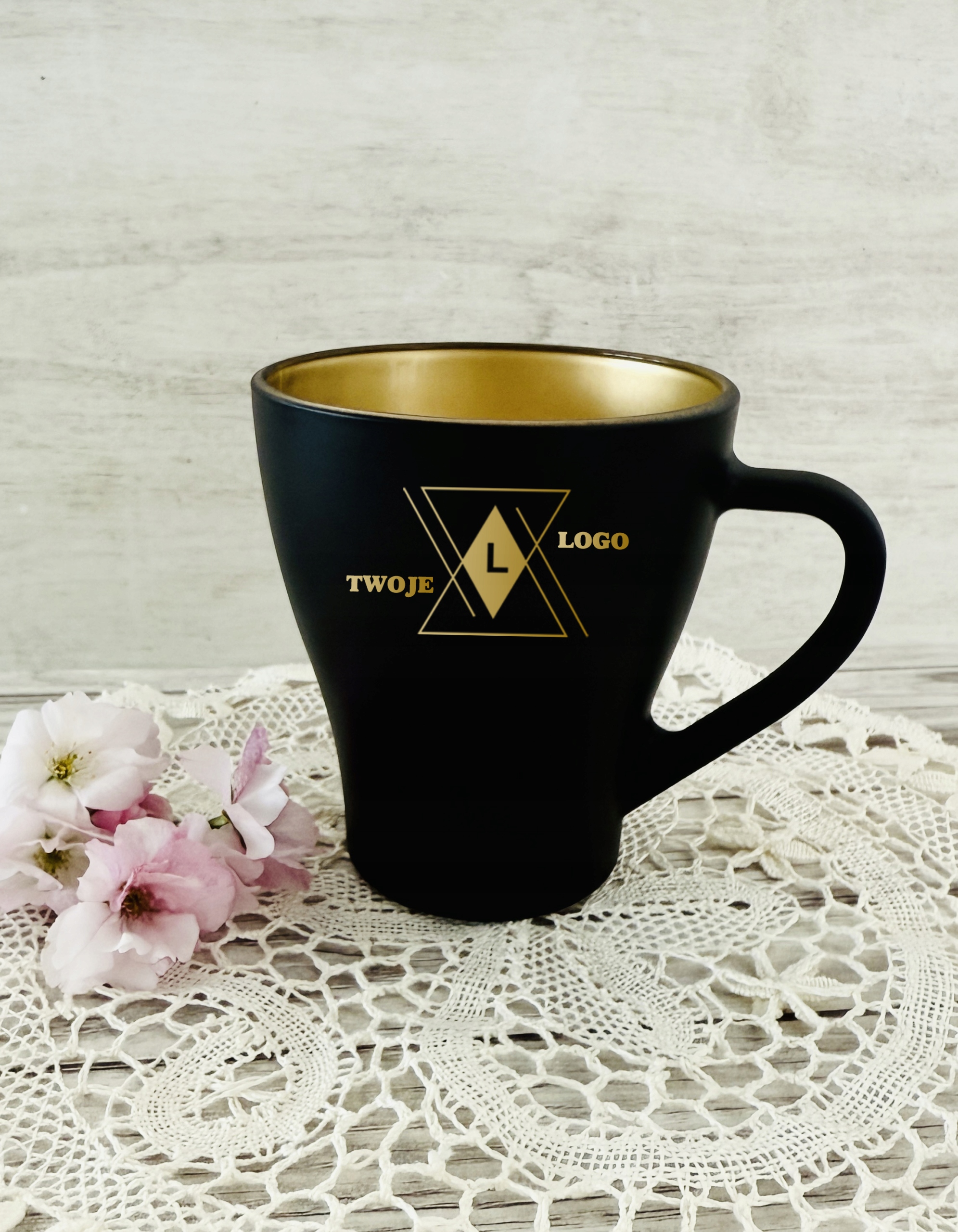 Сірі рекламні чашки з вашим логотипом ваші субтитри Чорна золота середня