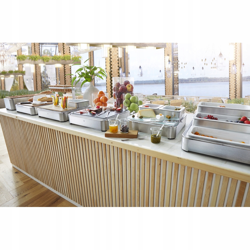 Ексклюзивний трьома -рівень шведського шведського столу хліба з фуршету Quadro 2. Система Quadro дозволить вам ідеально представляти кожну страву на кожну випадок. Вони дозволяють заощадити простір і розвивати кожен простір. WMF Quadro зі стандартами GN є надзвичайно важливим у готельних та громадських галузях. Системи є ергономічними, привертають увагу і мають незліченну кількість модифікації. Найвища якість використовуваних матеріалів та дизайн систем WMF Quadro вражають! Завдяки лише трьом основним модулям з різними висотами та форматами, WMF Quadro є основою для максимальної гнучкості під час подання страв у вигляді фуршету. Рама з верхньою рамкою у двох розмірах, міст та основа для обслуговування з трьома рівнями збільшують корисну площу та створюють тематичні кулінарні острови. Картриджі виготовлені з дерева, меламіну, задимленого та атласного скла, хлібних кошиків та різних матеріалів у вашому фуршеті мають одну поширену особливість. Усі елементи виглядають чудово, їх легко очистити, а відбитки пальців ніде не видно. Ви можете індивідуально налаштувати кожен елемент WMF Quadro для ваших потреб або використовувати готові модулі для: Сніданок, обіди та вечірні страви у вигляді шведського столу. Це дуже зручний і продуманий доступний варіант з додатковою модифікацією в будь -який час. Невеликий пристрій LEDLIGHT піднімає тонке освітлення островів на стіл, щоб створити дійсно унікальну атмосферу.