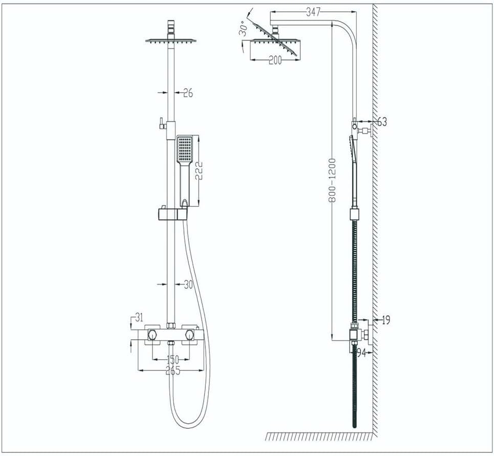 Система термостатичної душу, квадратна стовпчик з головою.