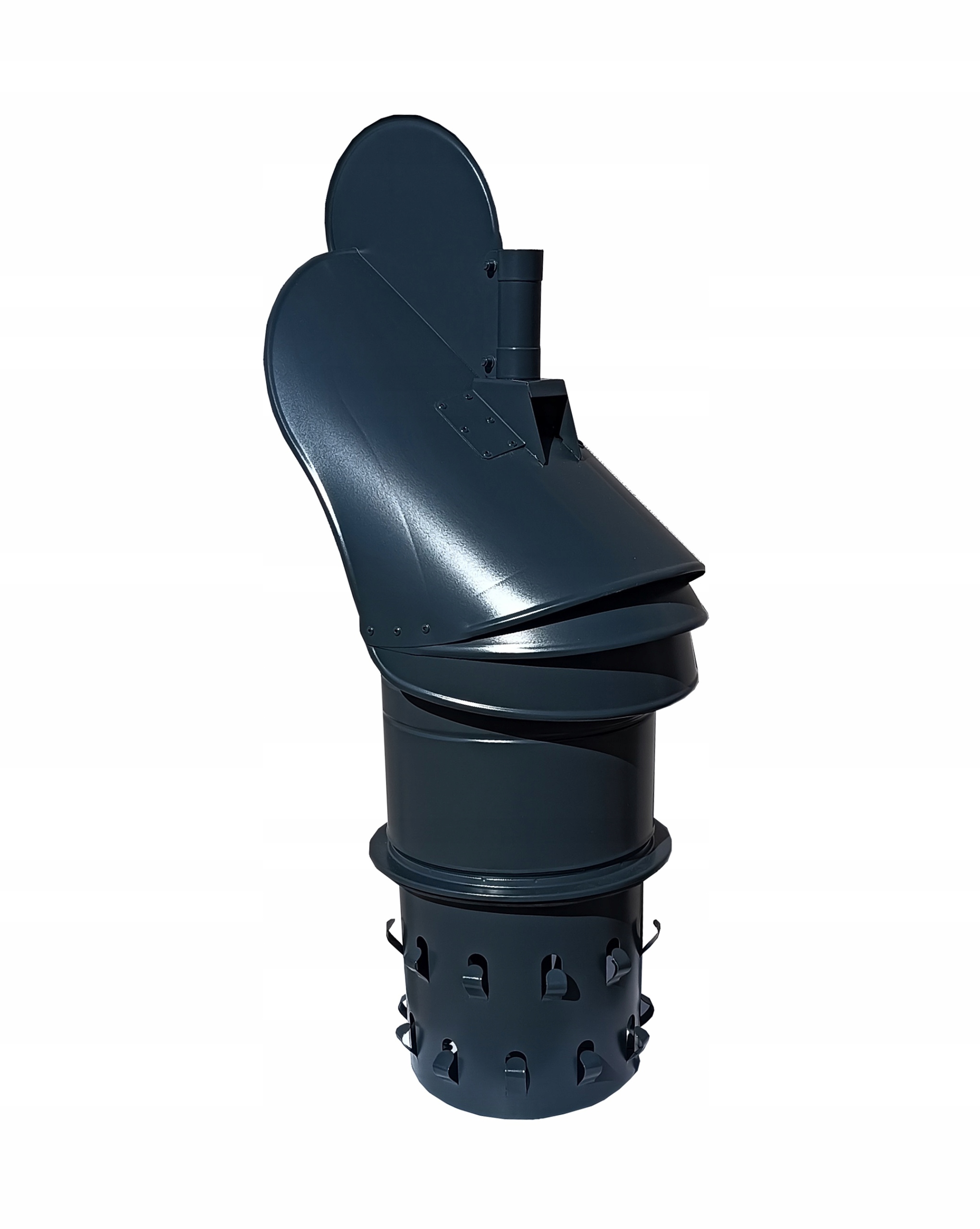 , він встановлений на торгових точках димоходу, твердої палива, гравітаційної вентиляції, особливо в одному та мульти -сімейному корпусі.