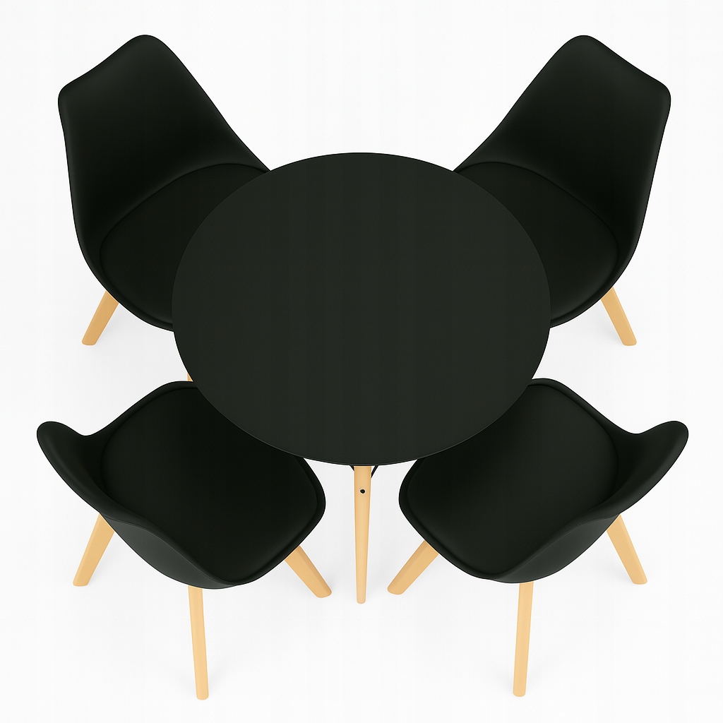 Введіть функціональність та позачасовий стиль у свій інтер'єр. Пропонований набір складається з елегантного круглого столу з діаметром 80 см та чотирма сучасними стільцями. Це ідеальне поєднання мінімалістичного дизайну з натуральними матеріалами - ідеально підходить як для кухні, їдальні, так і сучасної офісної зони або кафе.