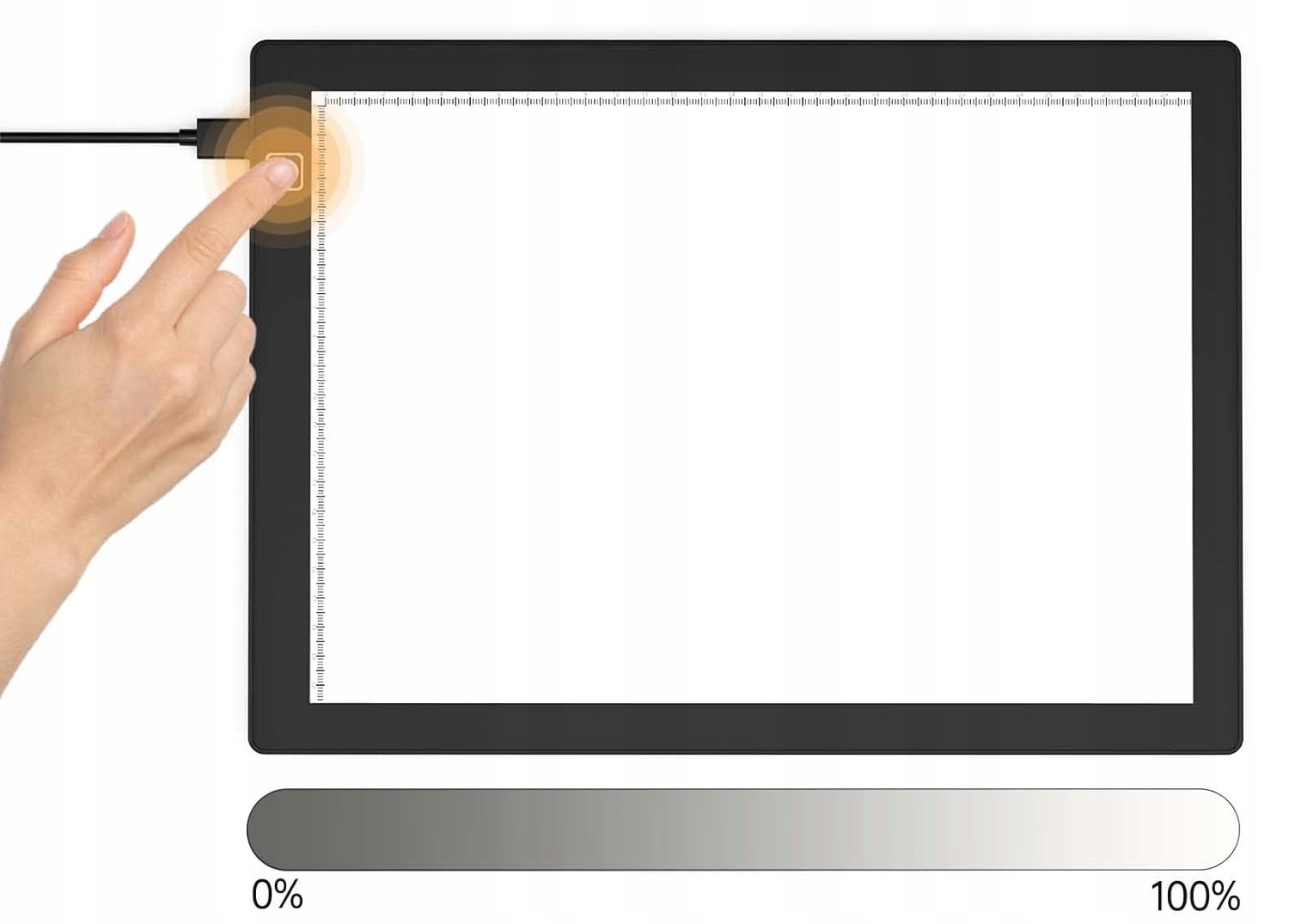 - Плавне керування яскравістю за допомогою Smart Memory: просто торкніться перемикача, щоб увімкнути або вимкнути світлову коробку. Потім натисніть і утримуйте перемикач, щоб відрегулювати яскравість. Яскравість змінюється безперервно (від світлого до темного, від темного до світлого) і відпускає його, коли досягається ідеальна яскравість. Ця світлова панель інтелектуально запам’ятовує останню використану яскравість.