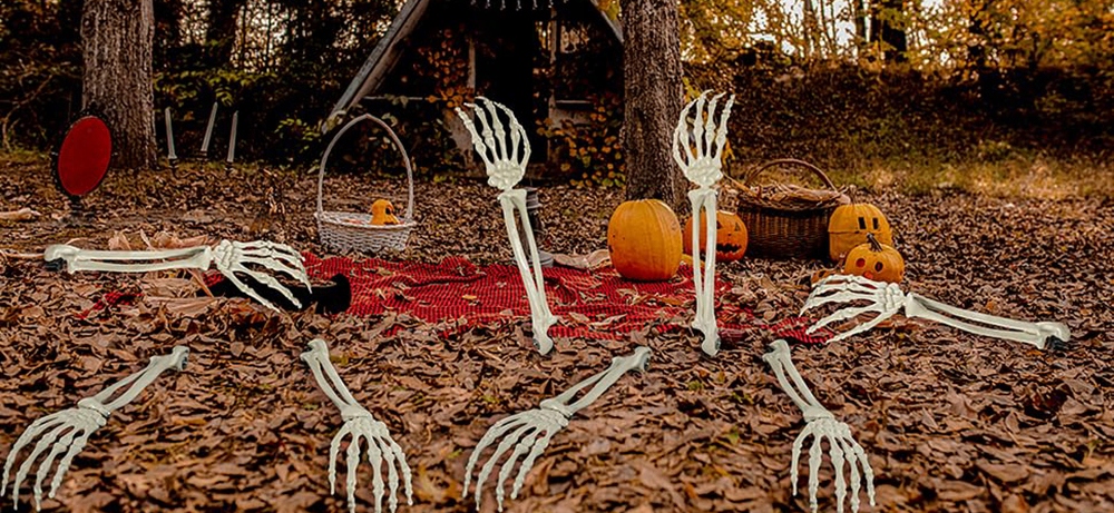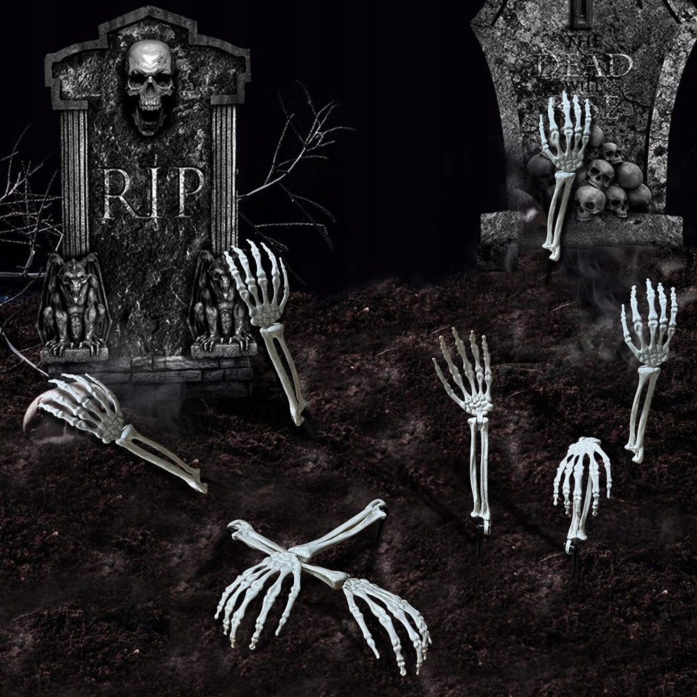 - Просто покладіть руки скелета на галявину, і вони будуть виглядати як примарний дух, що виникає з могили! Вони ідеально підходять для Хеллоуїна, прикрас кладовищ та прикрас зомбі всередині та зовні. Вони, безумовно, лякають ваших друзів та сусідів.