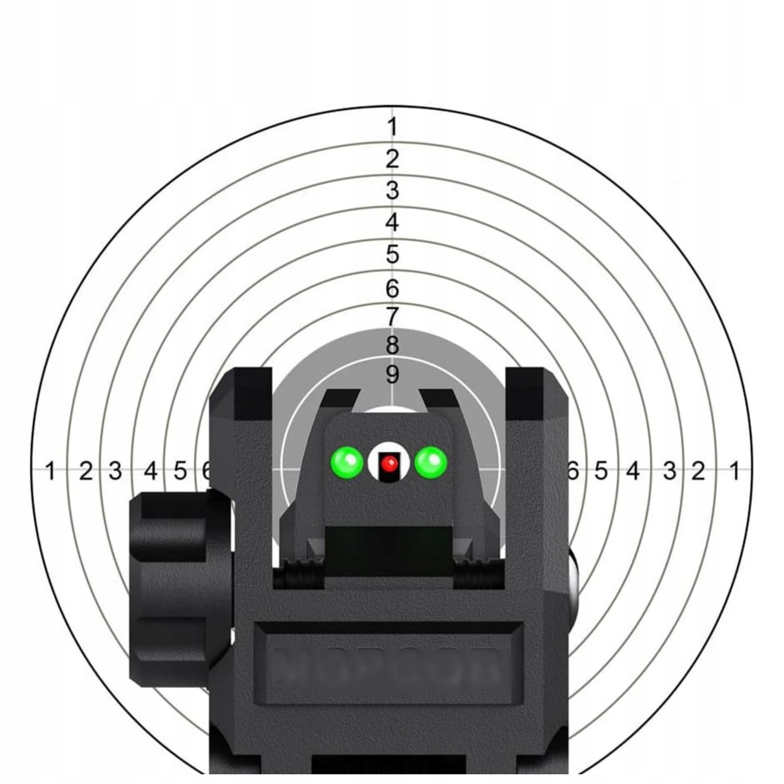 При використанні волоконно -оптичних прицілів вражаюче червоне волокно на передній частині чітко і точно встановлює точку зору для стрільця, гарантуючи відмінну чіткість зображення. У той же час, зелене волоконно -оптичне видовище, спритно інтегроване ззаду, діє як сигнальна машина в умовах поганого освітлення, забезпечуючи безперервний і стабільний візуальний привід до стрільця, завдяки якому мета є точною та надійною. Така конструкція, безсумнівно, забезпечує strzelc чіткою і непорушеною лінією зору.