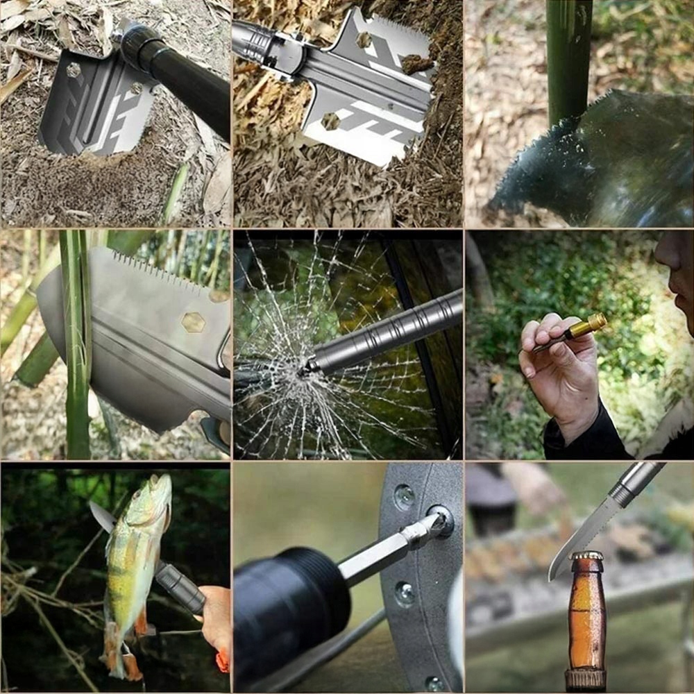 лопата може бути відрегульована під різними кутами, щоб забезпечити комфорт використання. Прикріплена пила/ніж досить гостра, і немає проблем з різанням деревини або вирізанням порізів. Ви можете викопати велике багаття і навіть подрібнити трохи деревини у вогні. Ідеально підходить для кемпінгу, поїздки на вихідні або на відкритому повітрі.