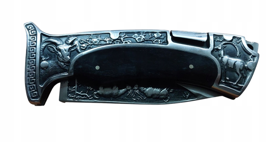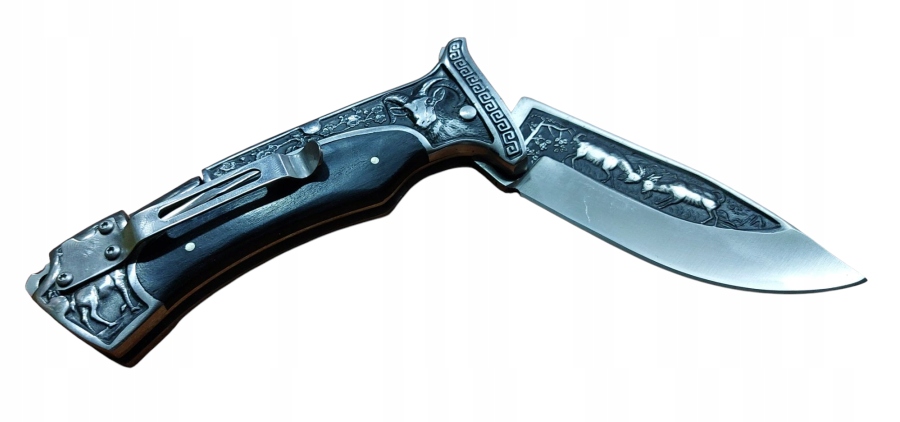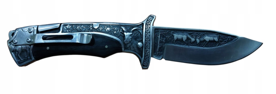 Загальна довжина: 22 см. Довжина леза: 9.5 см. Ширина леза: 3 см. Вага: 320 g. Товщина леза 3 мм. Прикрашений мисливським мотивом. Ідеально підходить для подарунка. Виглядає конкретно і в той же час благородний.