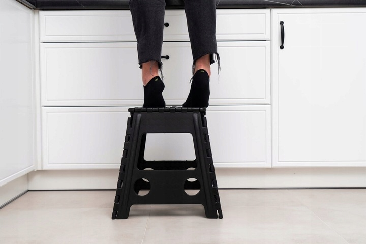 ?ТабуретрозкладнийЧорнийзавдяки своїй функціональності підійде в будь-який будинок. Завдяки своїй універсальності табуреткою можуть користуватися як діти, так і дорослі. Продукт буде ідеальним, якщо вам важко дістатися до продуктів, які розміщені на високих полицях, недоступних для вашого зросту. Для дітей молодшого віку відмінно підійде в якості табуретки, завдяки якій вони зможуть дістатися до недоступних і високих меблів.