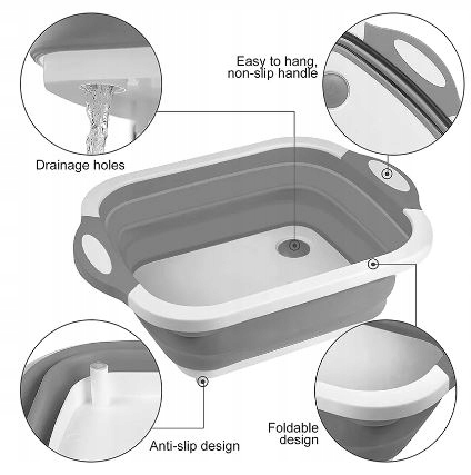 Ця дошка для рубання є універсальною і має три функції в одному продукті. Його можна використовувати як традиційну дошку для подрібнення, забезпечуючи зручне та безпечне місце для приготування страв. Його також можна використовувати як миску, що дозволяє перенести подрібнені інгредієнти безпосередньо до страви. Крім того, він має побудований злив, який ефективно видаляє зайву рідину з подрібнених продуктів, що полегшує приготування салатів або фруктових десертів.