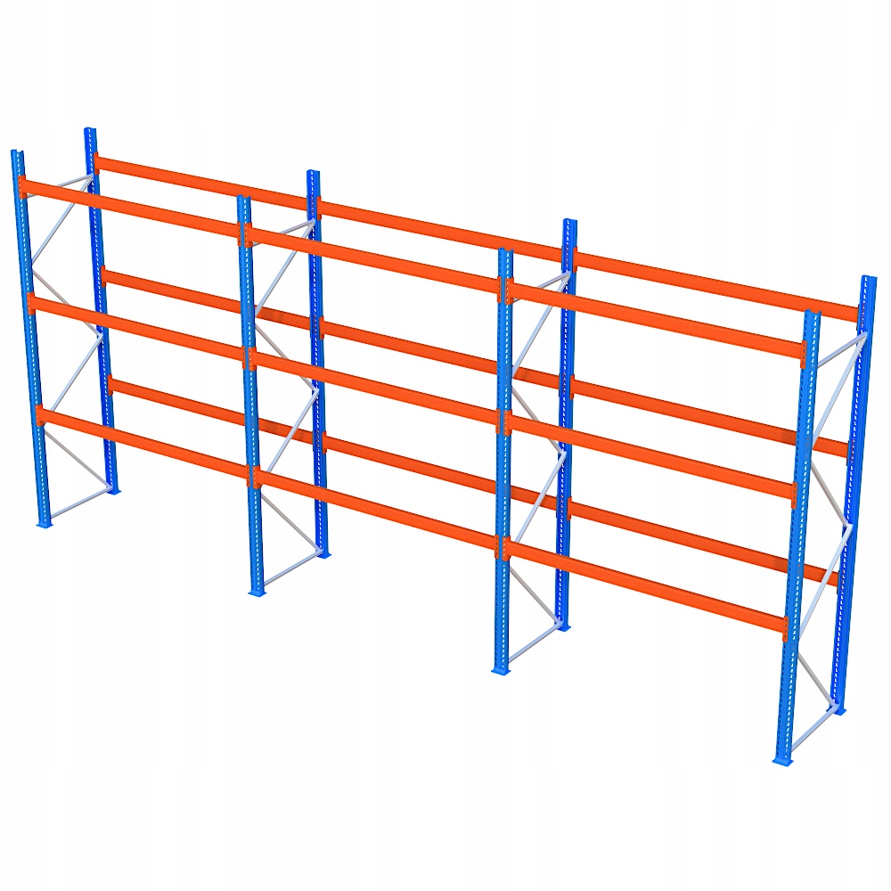 Полкиця складається з 3секцій з робочою довжиною 270 см кожна . Полиця має 4 рівні (включно з підлогою), що дає загалом простір для 36 піддонів. Висота рівнів регулюється вільно. Модульна конструкція - ви можете додати потрібну кількість рівнів і цілих секцій, створюючи довгий ряд полиць.