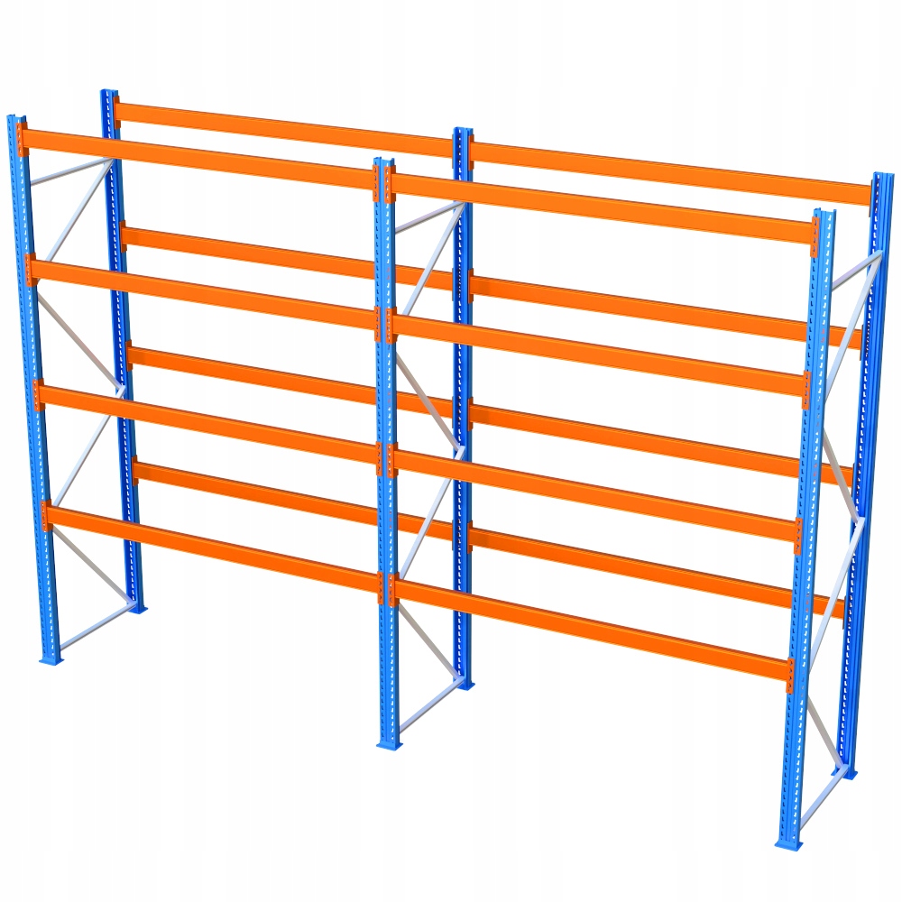 Полкиця складається з 2секцій з робочою довжиною 270 см кожна . Стелаж має 5 рівнів (включаючи підлогу), що дає загалом простір для 30 піддонів. Висота рівнів регулюється вільно. Модульна конструкція - ви можете додати потрібну кількість рівнів і цілих секцій, створюючи довгий ряд полиць.