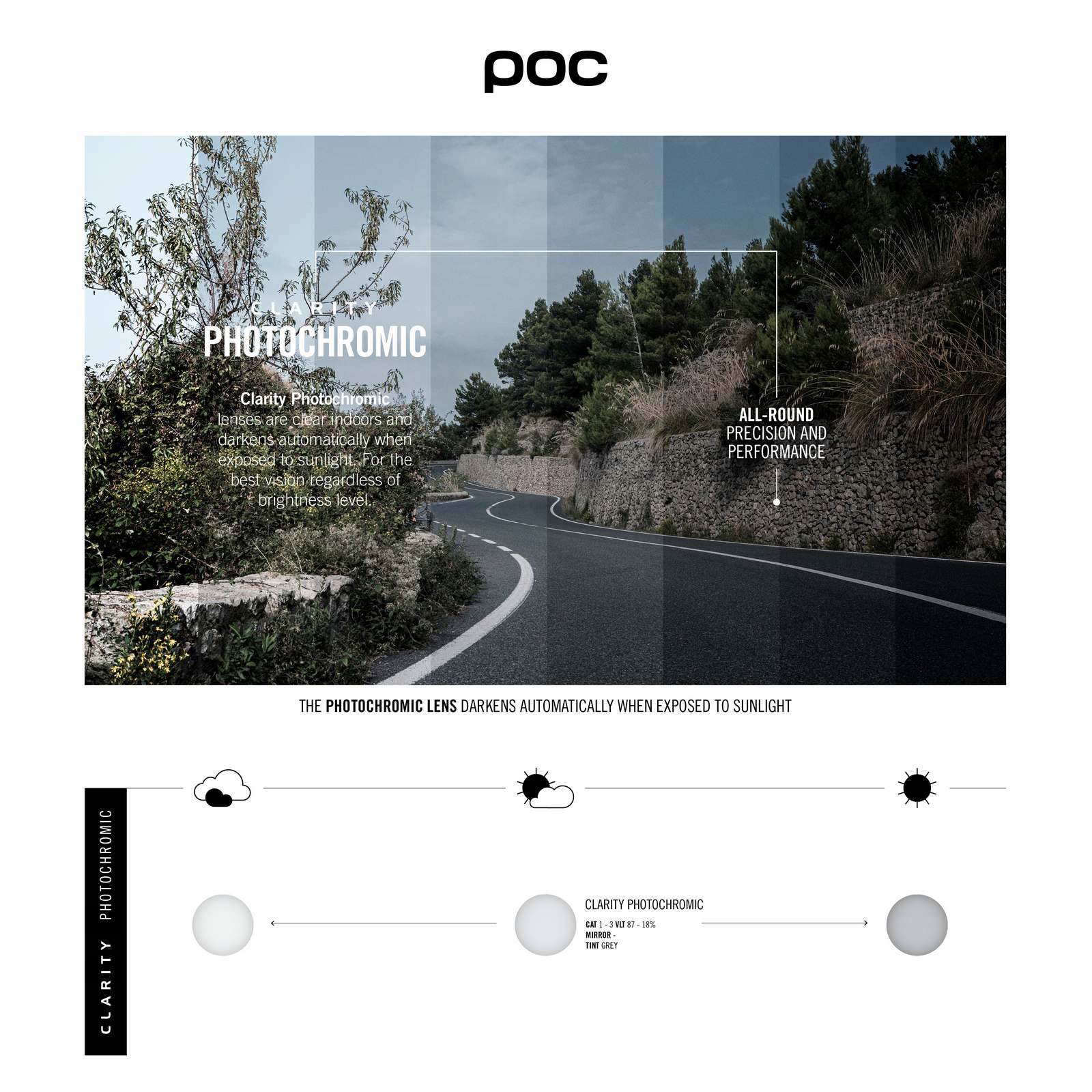 Змінні лінзи для окулярів POC Aspire. Фотохромні лінзи Aspire Clarity створені для забезпечення покращеного контрасту в різноманітних середовищах. Фотохромна технологія дозволяє налаштувати лінзу під переважаючі умови освітлення. Він автоматично темніє та світлішає залежно від інтенсивності сонячного світла.