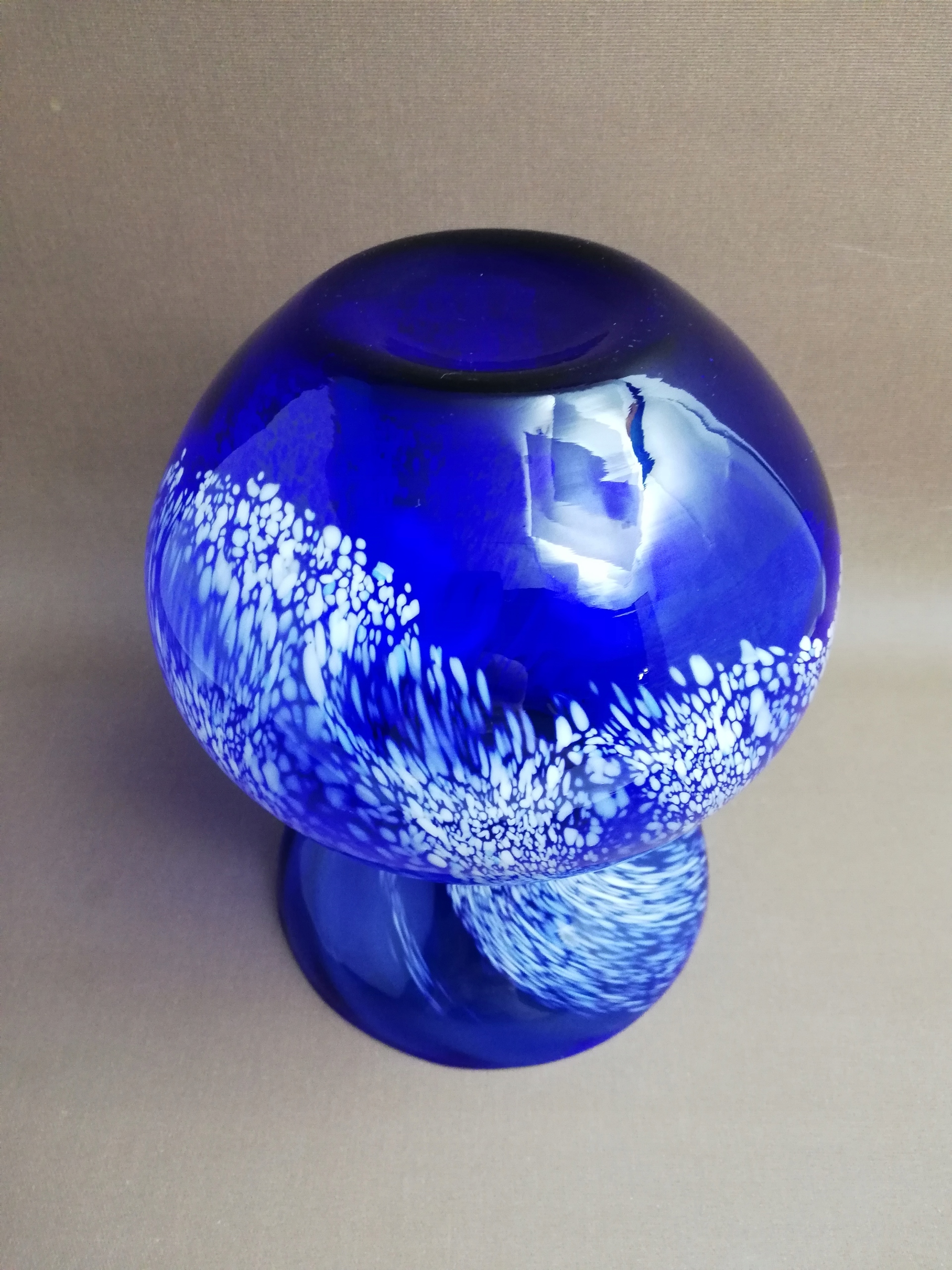 Ваза старого колектора, виготовлена з масового кольору, кобальт, з часів польської народної республіки, Laura Glassworks, прикрашена обдурюванням