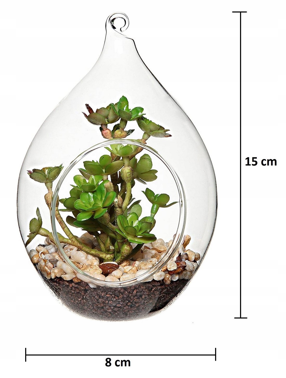 Чудова прикраса у формі сльози. Всередині кілька рослин - сукулентів і декоративне каміння, які створюють неповторний ефект. Чудовий декоративний гаджет, який зробить наше оточення барвистішим і затишнішим. Фенечка створює чарівну атмосферу. Прикраса підходить для підвішування (джутова нитка входить) або для стояння. Оригінальна прикраса та чудова ідея для подарунка.