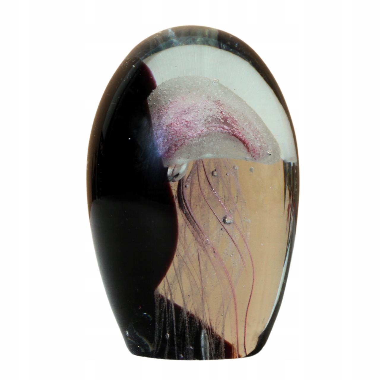 - Унікальна скляна прикраса з рожевим медузом, вбудована в чорне прозорого скла скла. Рука -зроблена в стилі Мурано, це вражає точними деталями та ефектом тривимірної глибини. Це елегантне доповнення до інтер'єру, яке підкреслить сучасний та художній характер простору.