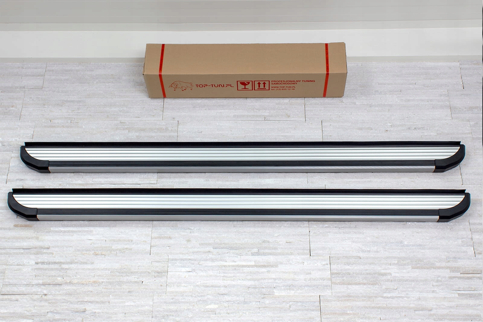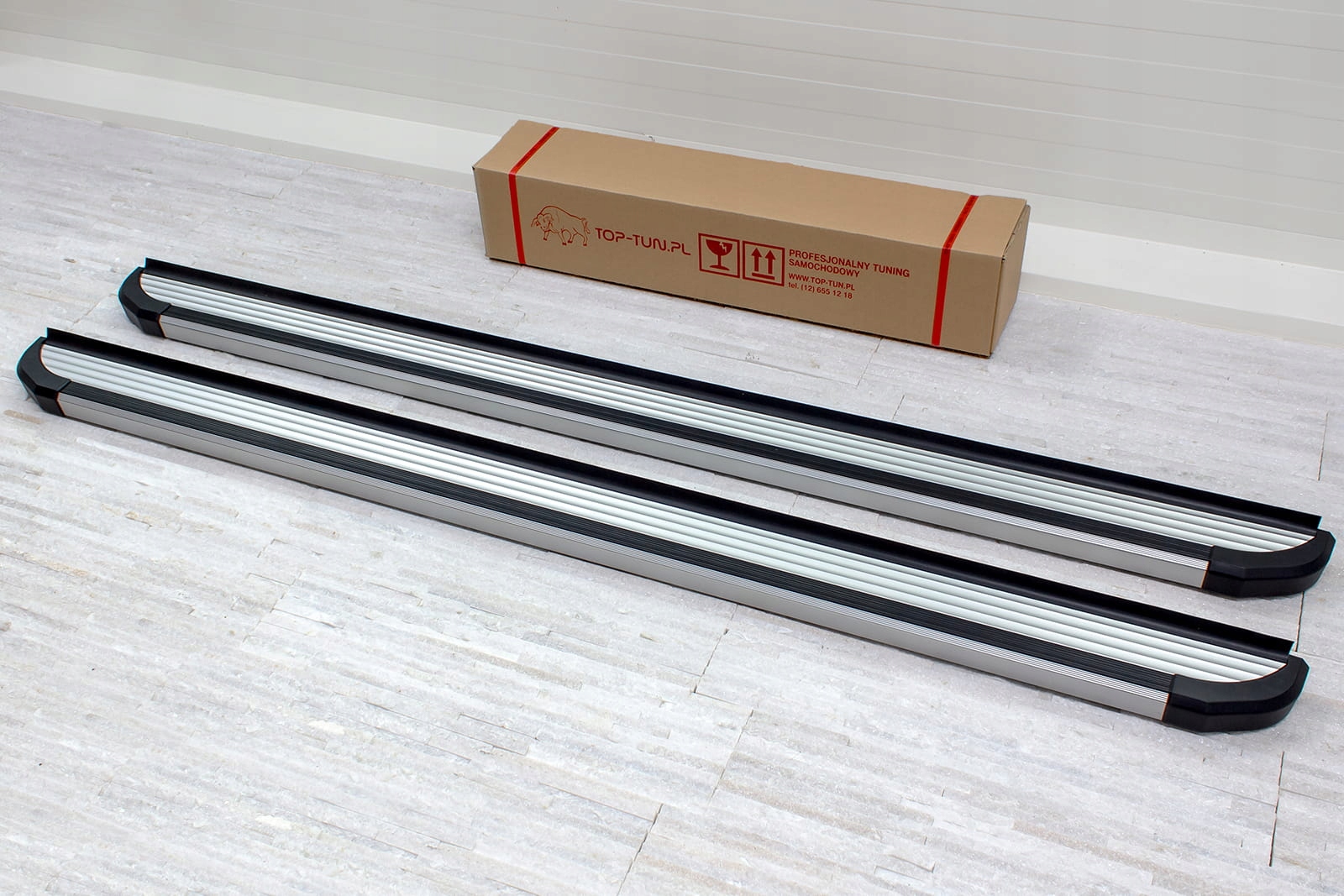 Набір бічних кроків (права та ліворуч), монтажні елементи та інструкції в наборі. Пороги встановлені на заводських точках. Встановлення кроків не вимагає буріння додаткових отворів! Ми рекомендуємо професійну збірку в семінарі ( ми знаємо з досвіду, що Найкраще використовувати послуги фарби або кузова, оскільки ці рослини найчастіше займаються складанням рейсів, доповнень та ступенів, тому збірка для цих рослин інтуїтивна діяльність ).