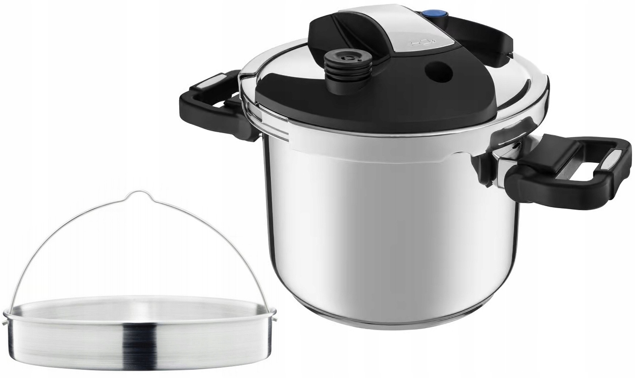Скороварка оснащена ситечком з ручкою для приготування на пару та складними ручками, які полегшують зберігання.