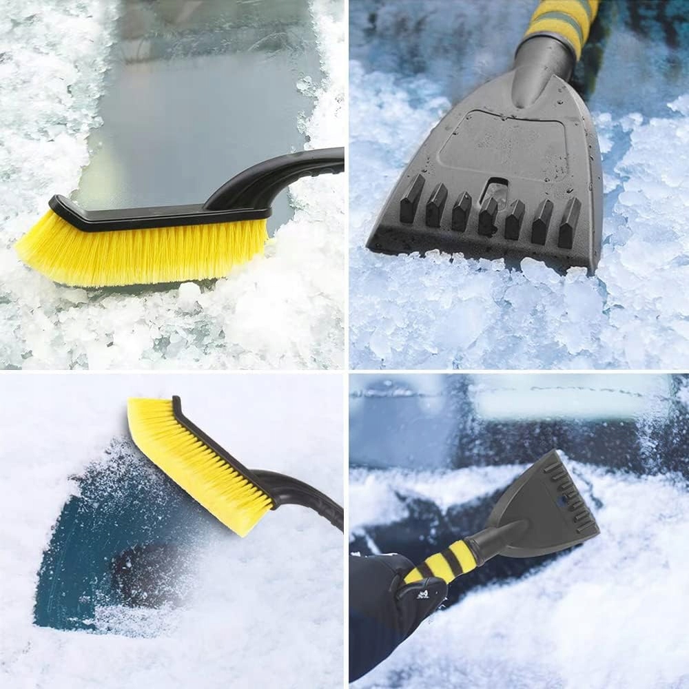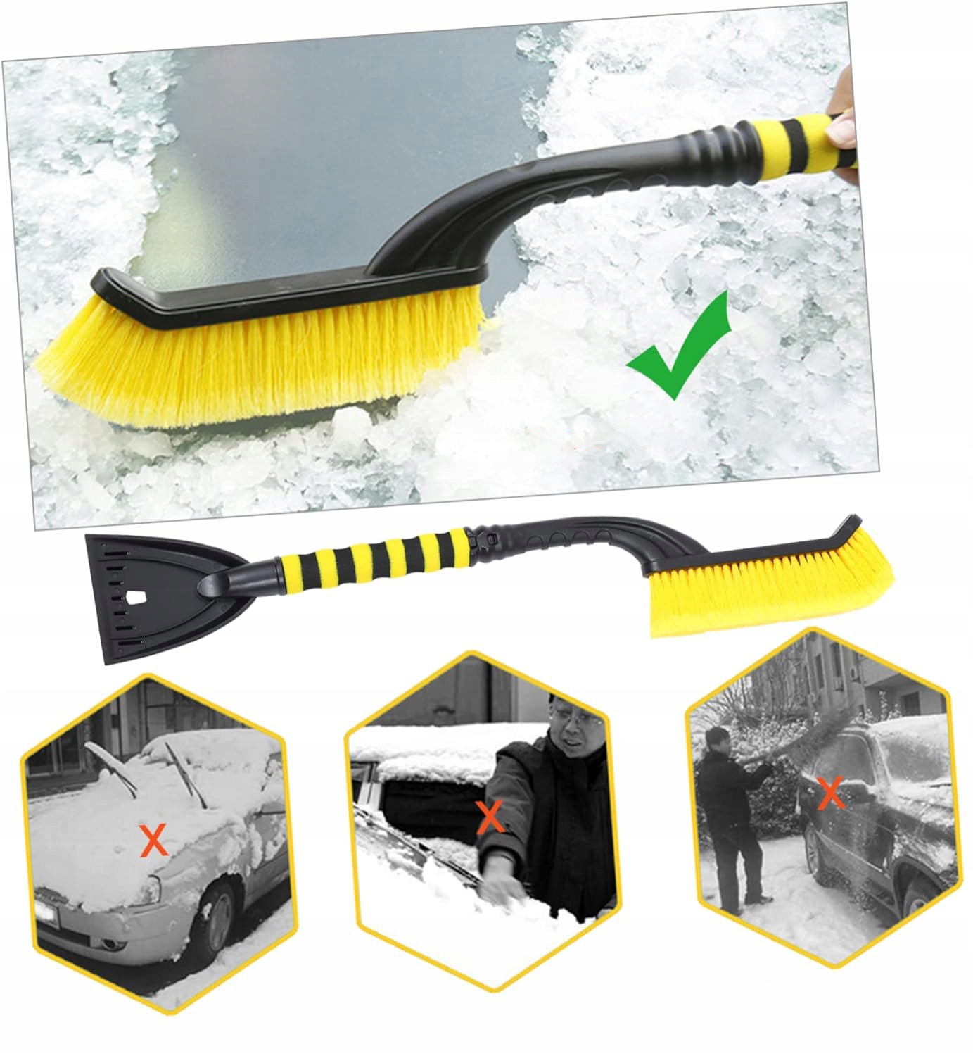 ❄ 2 в 1 : суцільний скребок швидко видаляє лід і мороз з лорового скла та вікон. Спеціально відшліфована щільна щетина з м'якими кінчиками легко видалять сильний сніг і не подряпає машинний лак.