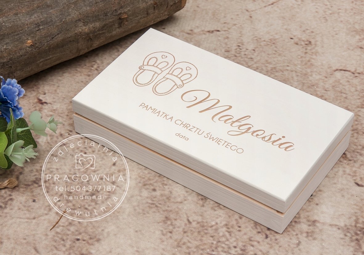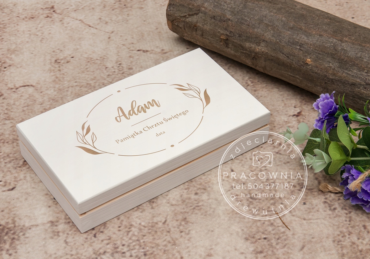На цьому аукціоні ви купуєте БІЛУ дерев'яну скриньку з магнітною застібкою, гравіюванням на кришці скриньки та присвятою всередині.