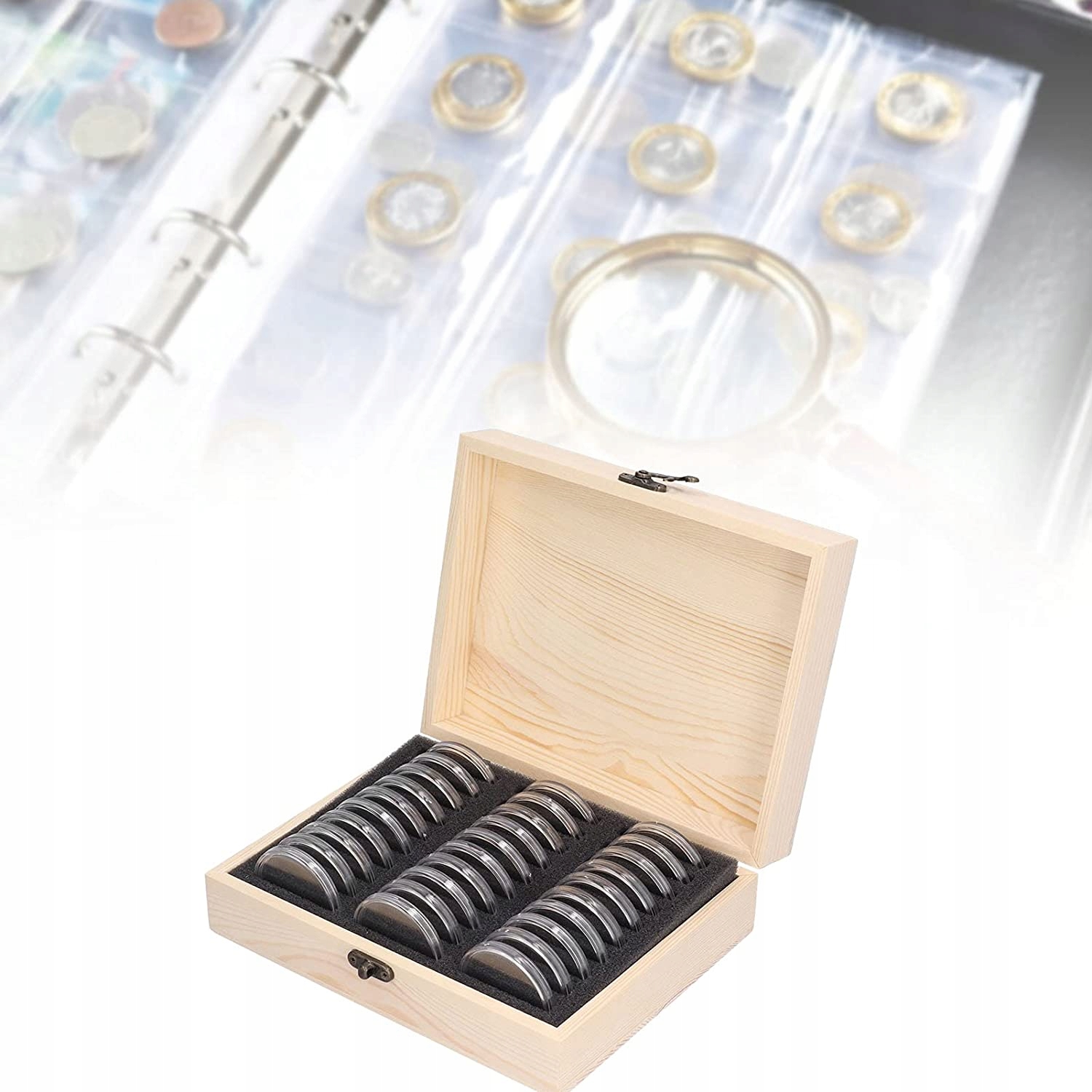 - 💎 - 【Коробка для зберігання монет】: Коробка для зберігання монет, виготовлена з високоякісної сосни для 30 пластикових капсул для монет. Дерев’яна коробка для зберігання монет практична та міцна, ідеально підходить для захисту ваших капсул для монет, щоб вони були акуратними та акуратними.