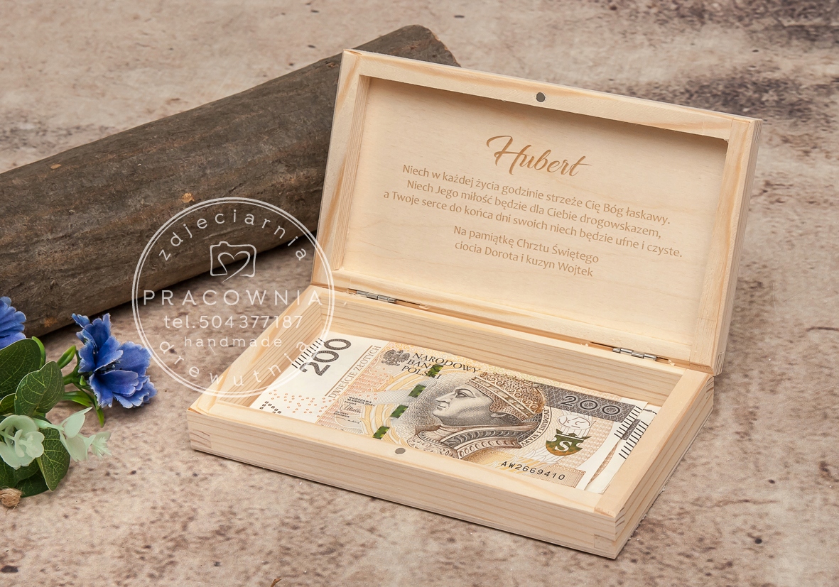 Дерев'яна скарбничка замість конверта з мотивом ХРЕЩЕННЯ.