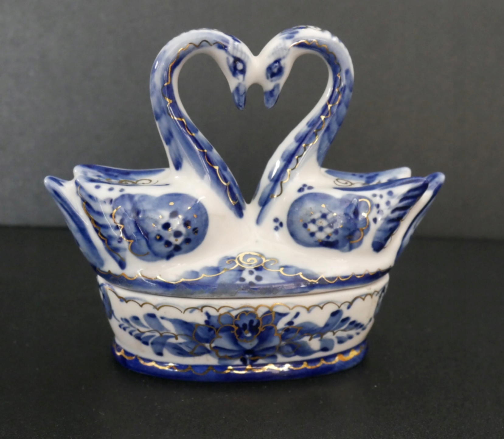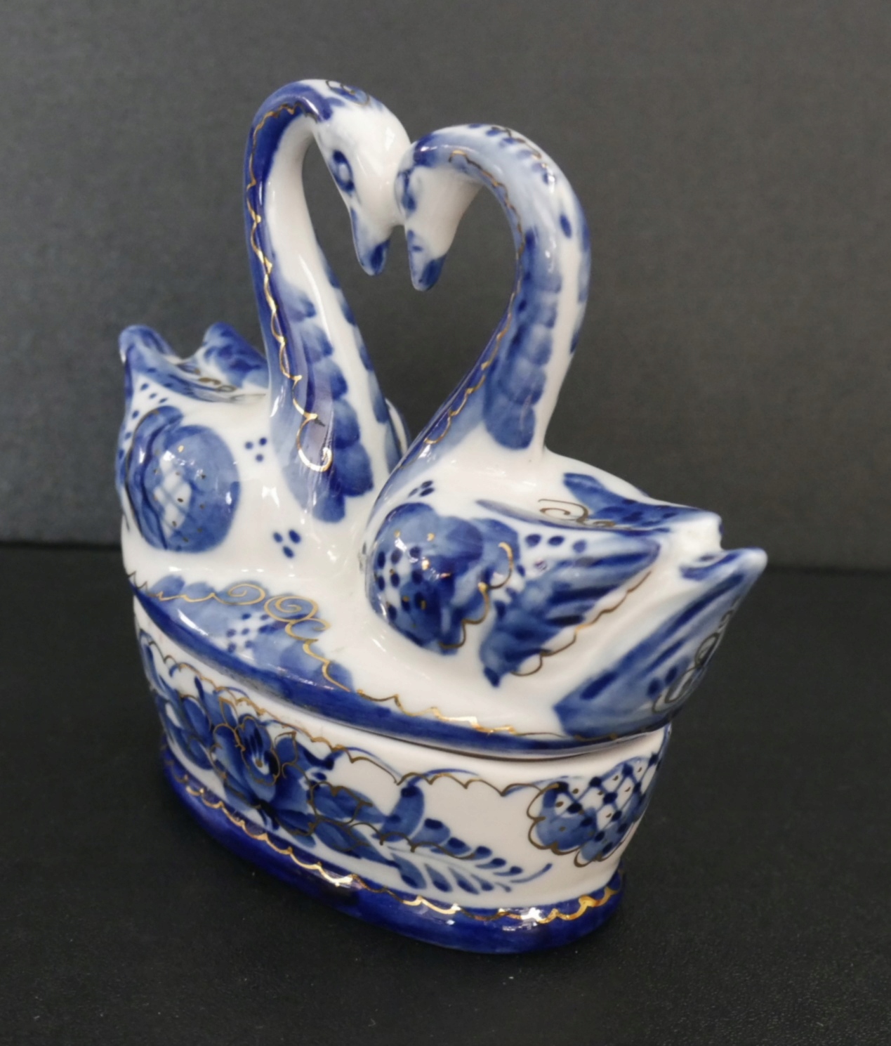 шкатулка з лебедями, виготовлена з традиційної східної кераміки, ручна робота та розписана гжель