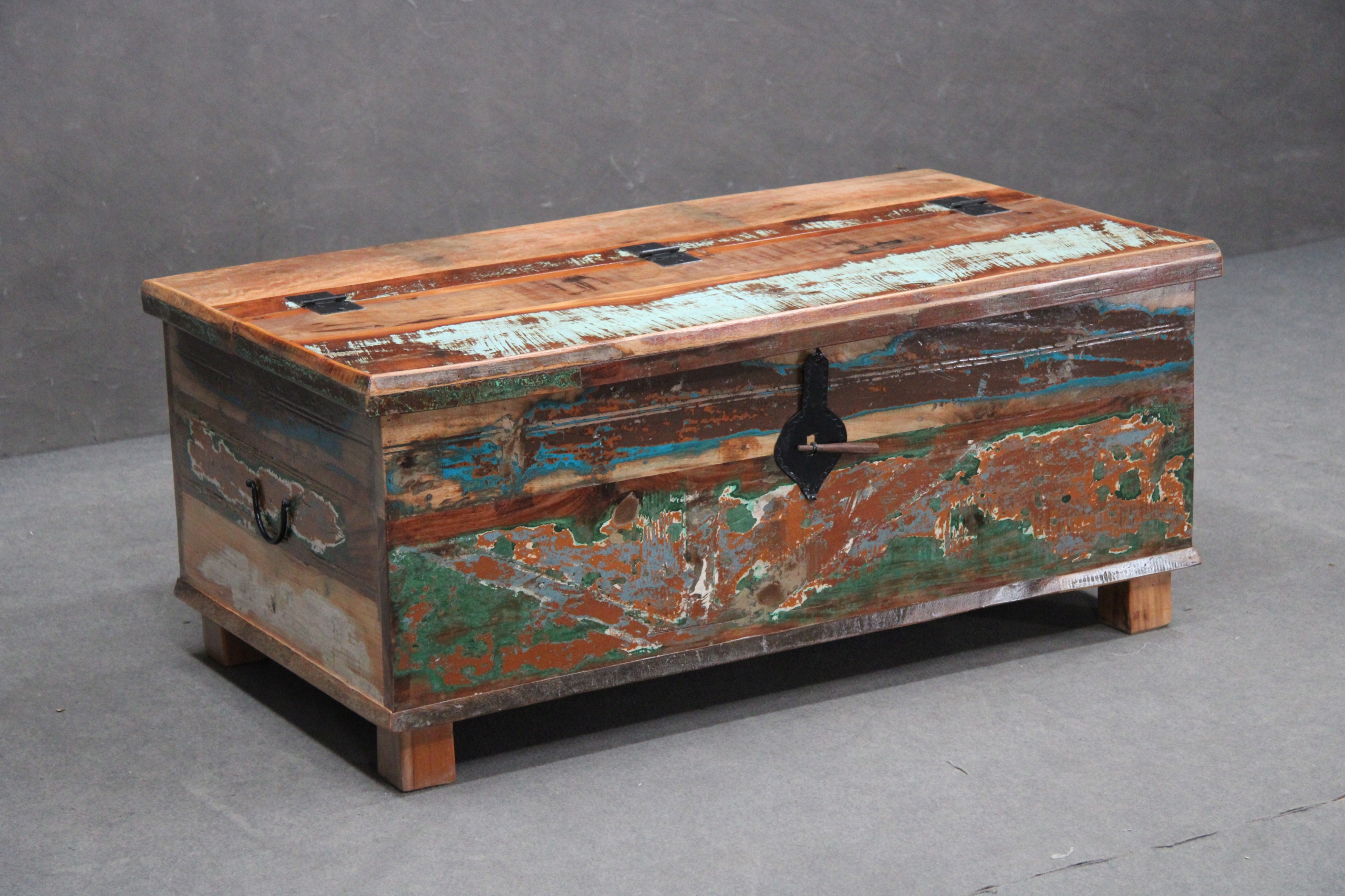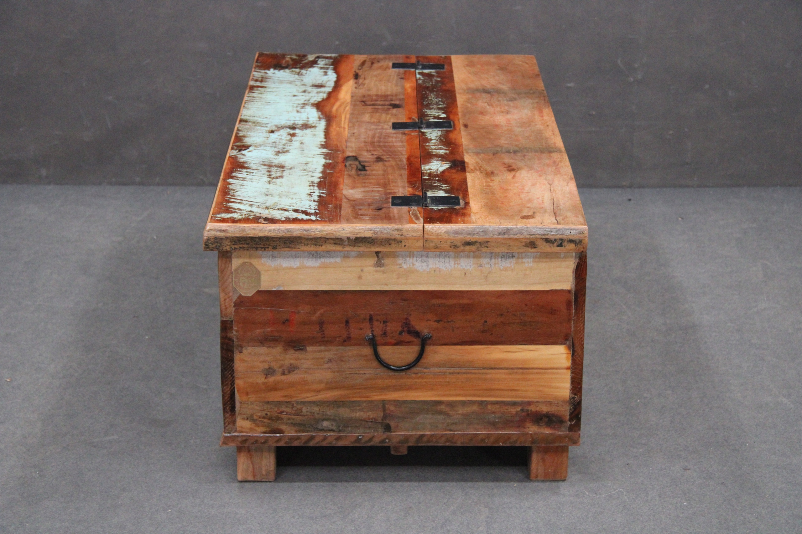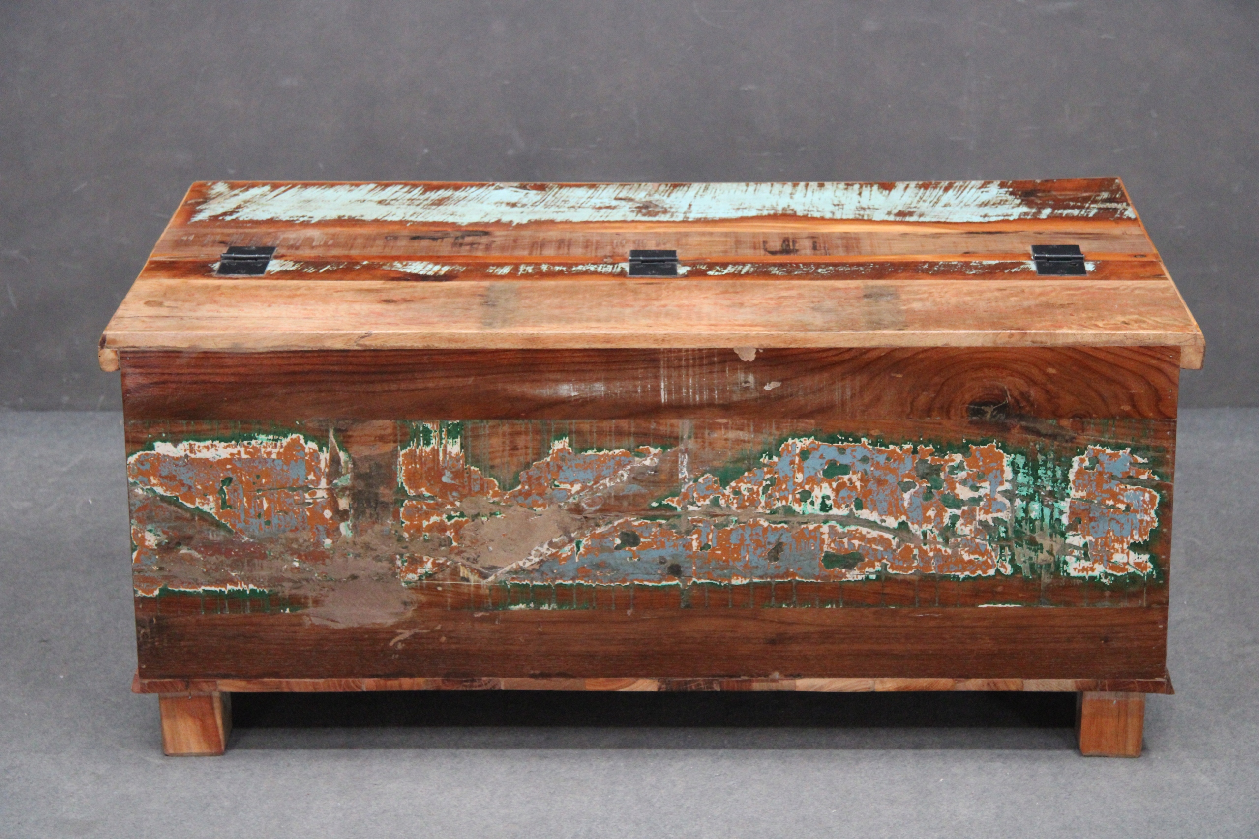 Скриня повністю дерев'яна ручна робота з переробленої деревини. Завдяки унікальній фактурі дерева і різноманітності кольорів, він впишеться в будь-який інтер'єр і ідеально підійде для вітальні, спальні або офісу. Кольори та структура дерева (невеликі тріщини, дірки, нерівності, зроблені навмисно) підкреслюють індивідуальність меблів.