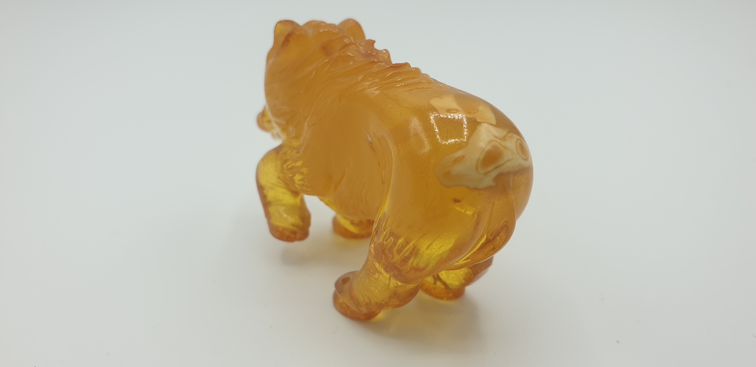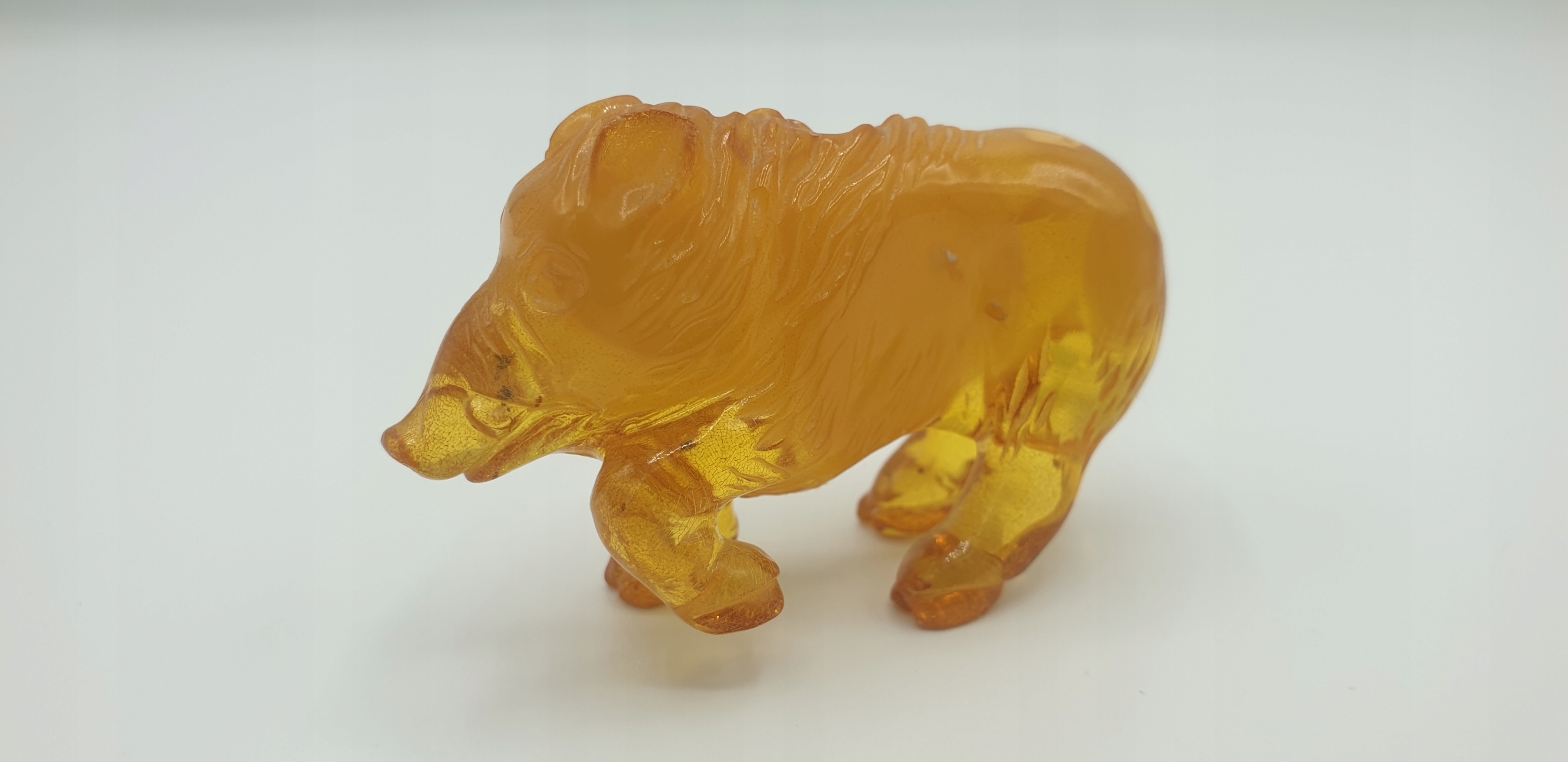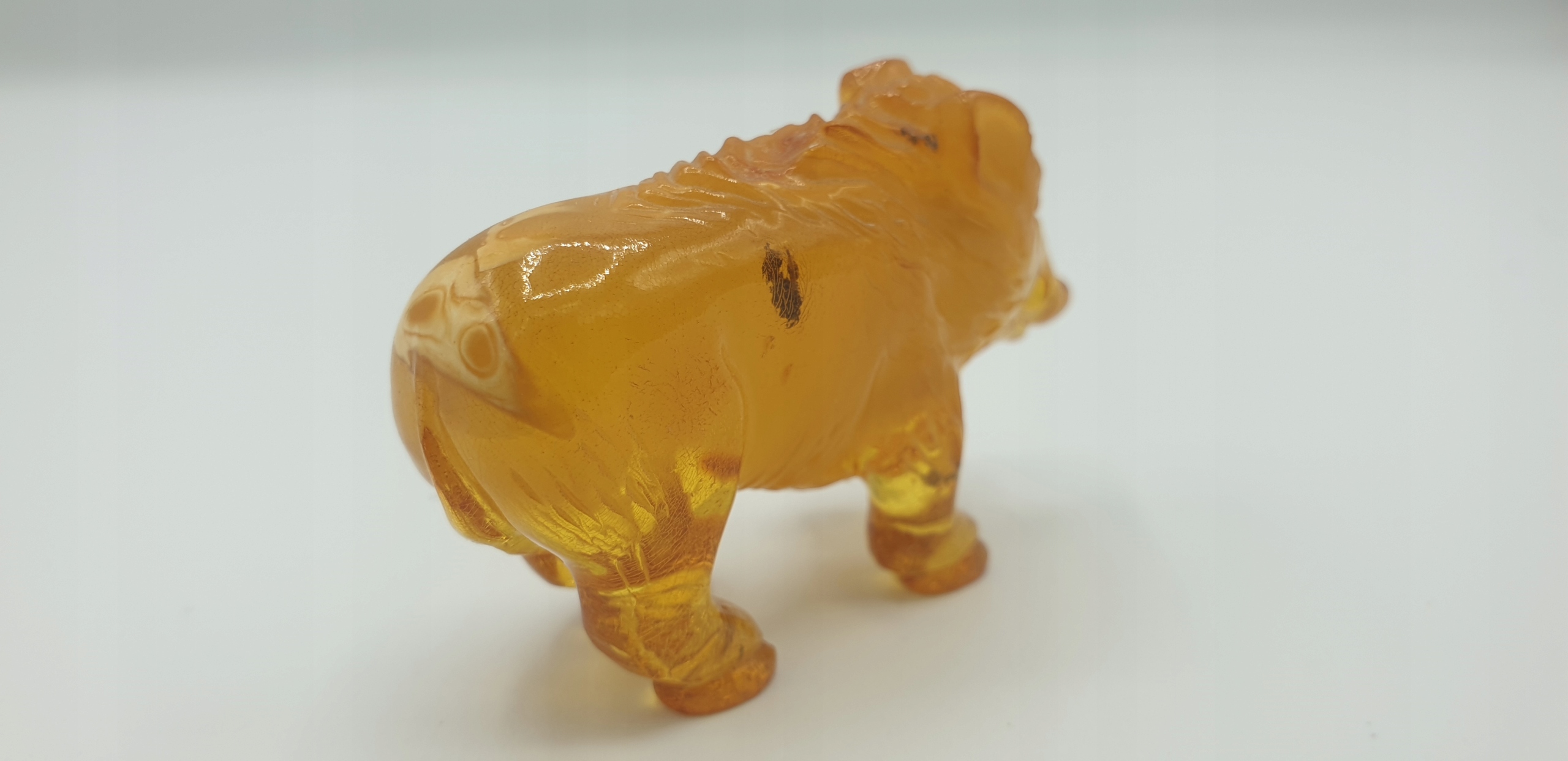 Скульптура дикого кабана, виготовлена вручну з цілісного шматка балтійського бурштину світло-молочного кольору.