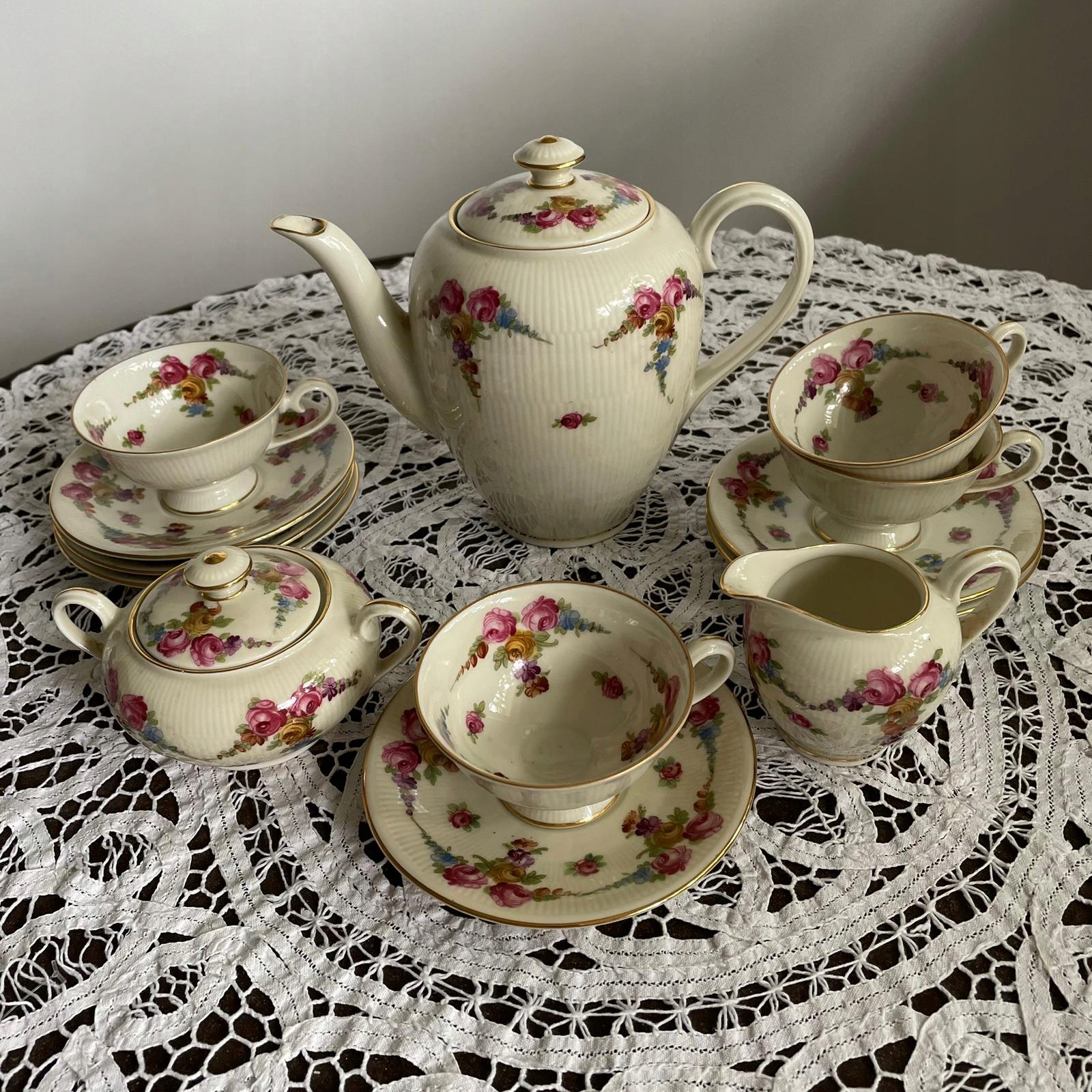 порцелян ECRU, прикрашений багатими квітковими мотивами. P> Висота JUG 15 см, загальна ширина 18,5 см.