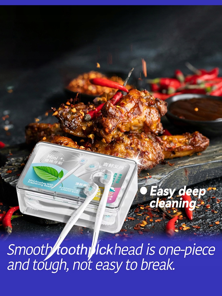 одноразові щітки головкою з розтріскувальними кульками, побудували "розтріскувальні кульки", які містять концентровані інгредієнти зубної пасти (наприклад, абразивні матеріали, миючі засоби, спеції тощо). Використовуючи, ви можете вичавити розтріскувальні кульки, щоб звільнити пасту і очистити зуби безпосередньо.