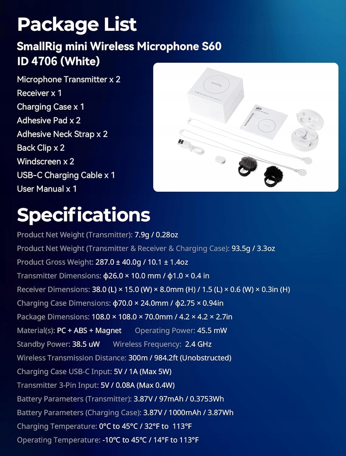 Професійна, компактна бездротова мікрофон Smallrig S60 забезпечує найвищу якість звуку в мобільних записах Ideal для фільмів, vlogs, інтерв'ю та передачі живих. Версія з портом USB-C працює як з пристроями Android та iPhone (з адаптером), ноутбуками та іншими пристроями з цим роз'ємом.