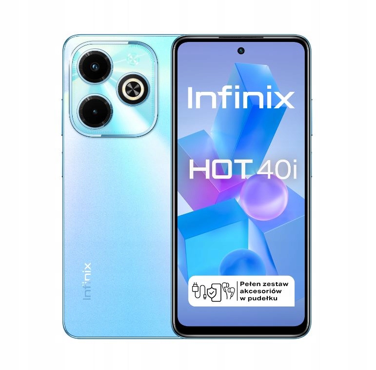 - Набір: голка для лотка для SIM-карти, посібник користувача, кабель живлення, навушники, блок живлення, заводський захисний екран, чохол, INFINIX HOT 40i