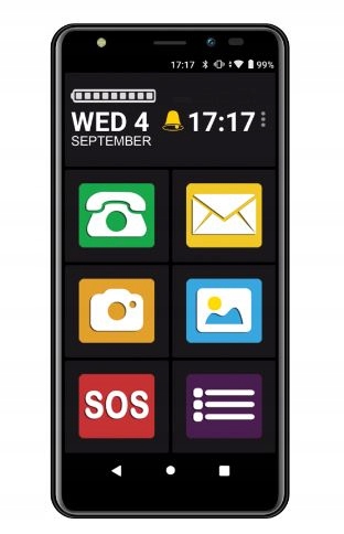 Насолоджуйтеся можливостями, які пропонує MS554, зберігаючи високий контраст використання, який досі був можливий лише з класичними телефонами. Використовуючи кнопку SOS на головному екрані, особа, яка користується цією програмою, може одним дотиком надіслати екстрене SMS, своє місцезнаходження за GPS або здійснити екстрений виклик. Функція захисту паролем захистить програму від випадкових або несанкціонованих змін налаштувань. Дружній екран створює абсолютно безпечне середовище для дитини чи літньої людини.