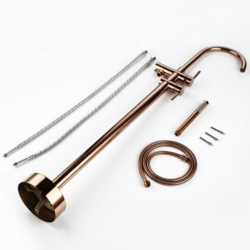 ЕКСКЛЮЗИВНИЙ Окремо стоячий змішувач для ванни QUADRO ВІД ПОЛІРОВАННОГО РОЖЕВОГО ЗОЛОТА З ДУШОВИМ НАБОРОМ