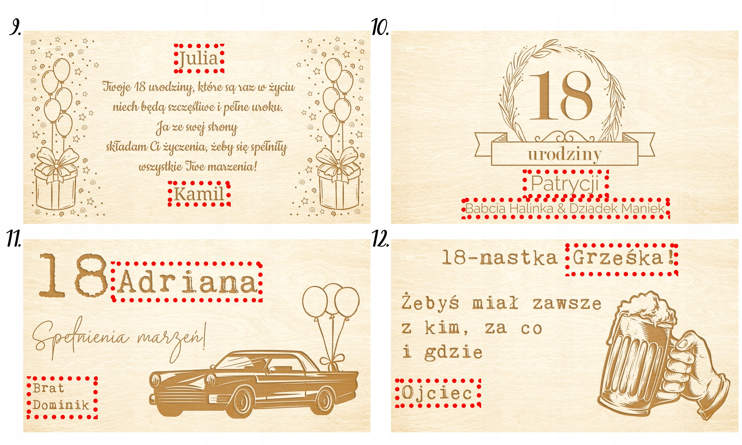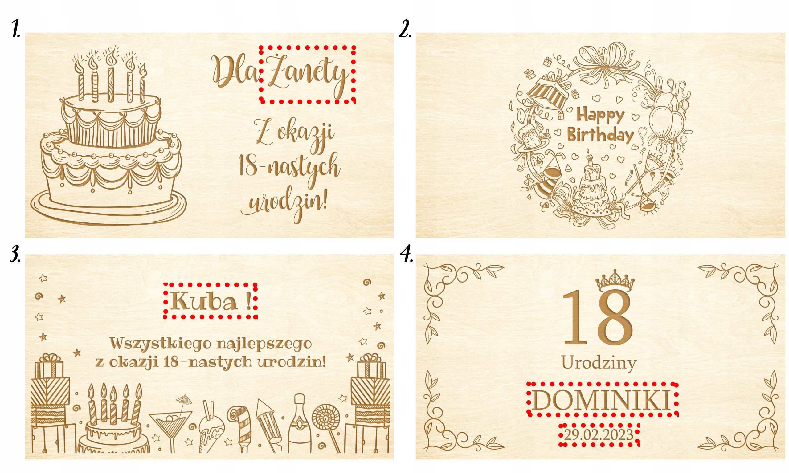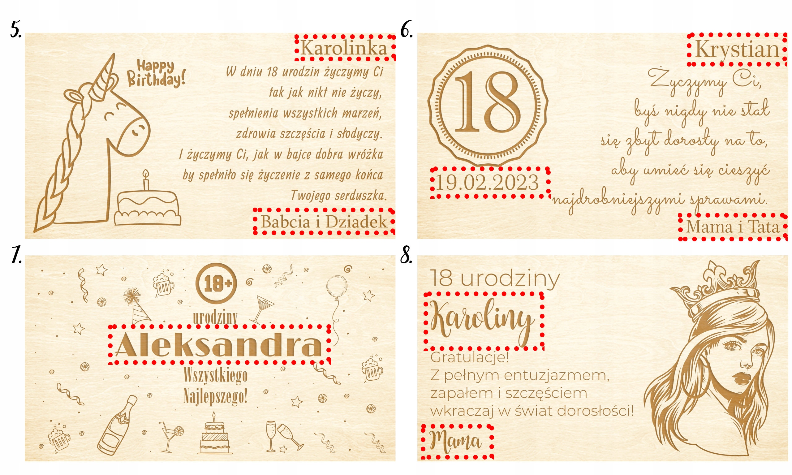 Після здійснення покупки не забудьте надіслати інформацію про обраний дизайн і дані, необхідні для персоналізації. Місце, що підлягає зміні, позначене червоною рамкою.