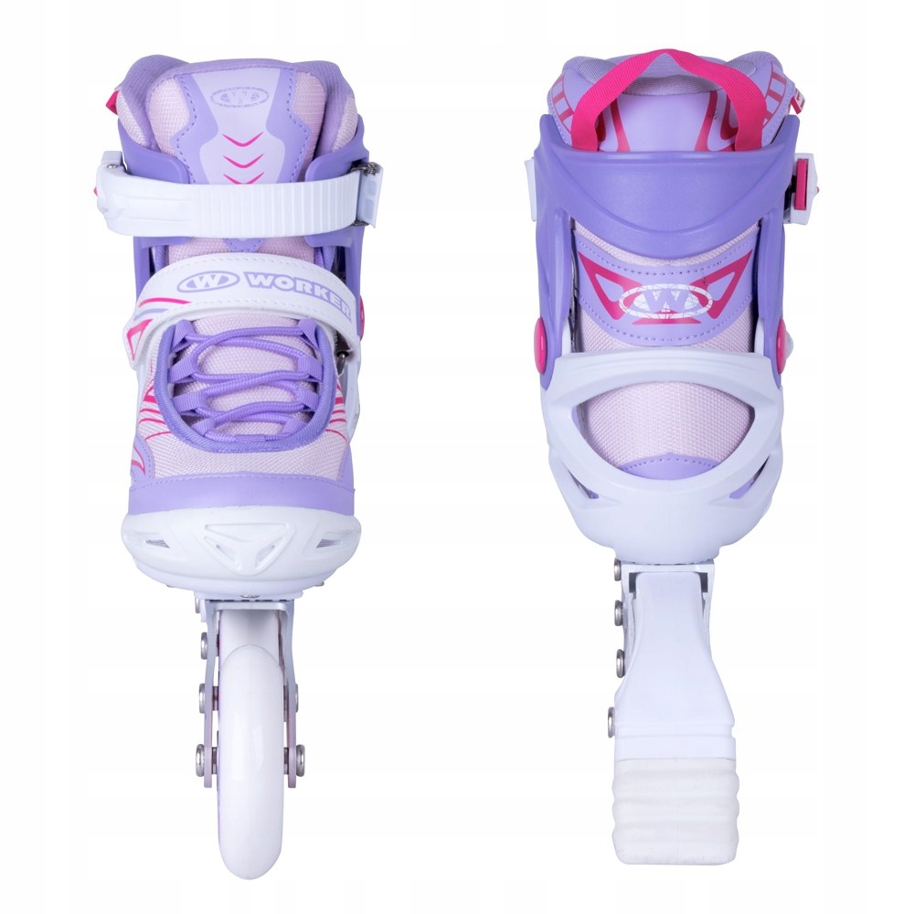 Робітник Sofore ковзани є високоякісними, сучасними роликами зі світлим алюмінієвим каркасом. Великі поліуретанові колеса з підшипниками ABEC 7 гарантують високий комфорт водіння. М'яка підкладка всередині взуття - комфорт, дозволяє ногам дихати і забезпечує максимальний комфорт. Система безпеки щиколоток стабілізує щиколотку і захищає від травм. Ролики оснащені практичною петлею на задній частині взуття та кріпильної системи, що складається з шнурків та 2 регульованих пряжок. Додатковою перевагою є практичне гальмо, розташоване на правому взутті та привабливий пастельний дизайн. 4 Технічні параметри