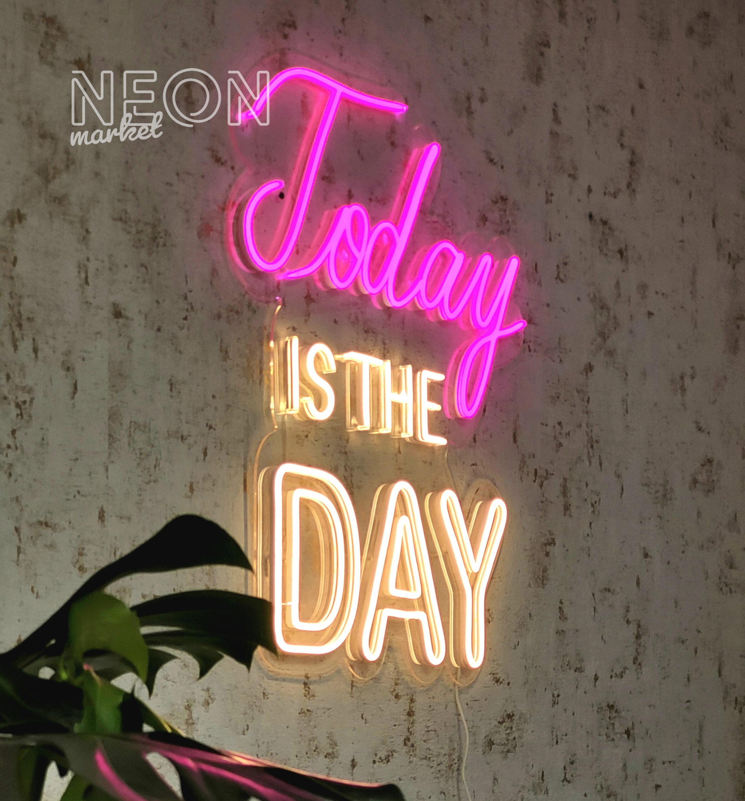 Світлодіодний напис Today is the DAY виготовлений з прозорого оргскла, має 2 вирізані отвори, можна повісити де завгодно, за допомогою волосіні або рядок. Він легкий, але і міцний, виготовлений з високоякісного матеріалу. На відміну від традиційних газових неонових ламп, наша світлодіодна неонова вивіска енергозберігаюча та споживає лише незначну кількість енергії. Світлодіодна стрічка містить діоди з більшим часом горіння, що збільшує час роботи в кілька разів. Живиться напис від безпечної напруги 12 В. У комплект входить блок живлення для розетки і радіоконтролер з функцією зміни інтенсивності світла і режимів миготіння. Усі роз’єми, доступні в нашому магазині, сумісні та відповідають один одному.