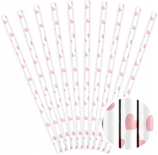 ✅ Соломки з білим папером із світло -рожевими сердечками