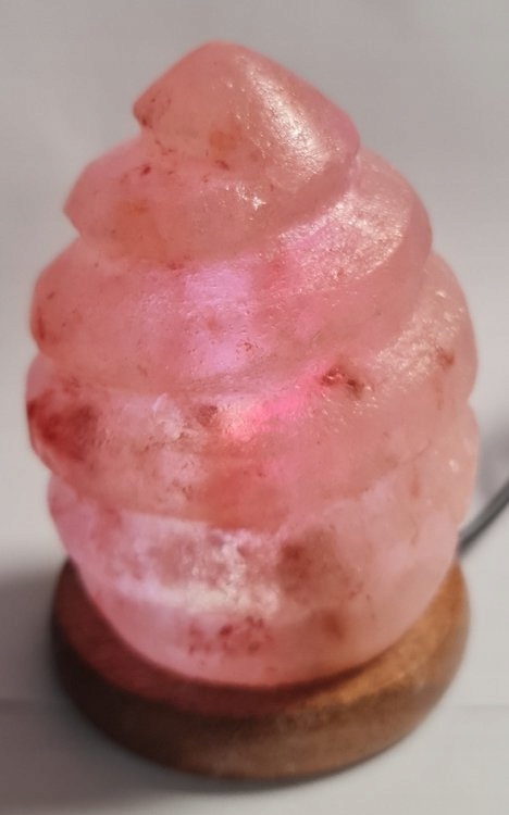 соляна лампа, вирізана з гімалайською сіллю в цікавій спіральній формі.
