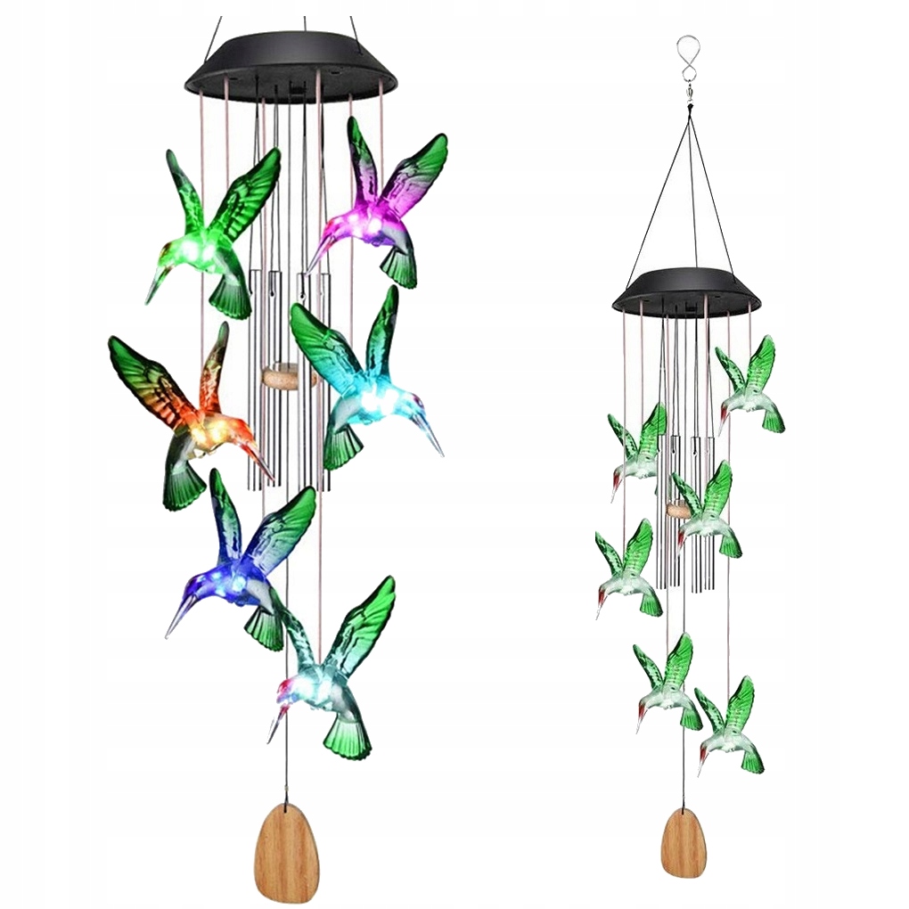 ✨ Світлодіодні вітряні дзвіночки Hummingbird є ідеальною прикрасою для вулиці та інтер’єру. Ідеальна прикраса для двору, веранди, тераси, саду, вітальні, спальні, а також різдвяна прикраса. Світлодіодні дзвіночки колібрі є енергозберігаючими та екологічно чистими, сонячні батареї заряджаються вдень і автоматично вмикаються вночі.