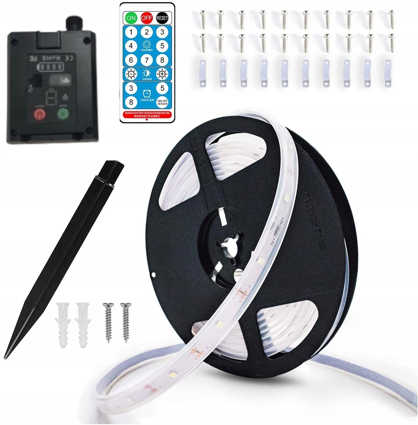 Світла смуга оснащена сонячною панеллю. Завдяки 8 різних функцій освітлення, включаючи різні кольори, миготливі режими та рівні яскравості, ви можете створити ідеальну атмосферу для будь -якого випадку.