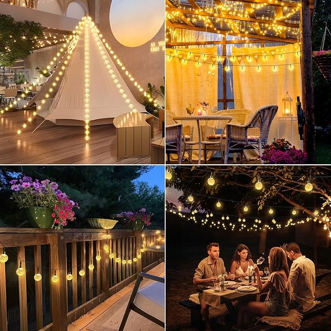 ⭐ лампи дуже добре працюють як цілорічна прикраса саду, тераси або перголи. В останні роки вони також використовувалися на весіллях, днях народження та інших подіях просто неба.