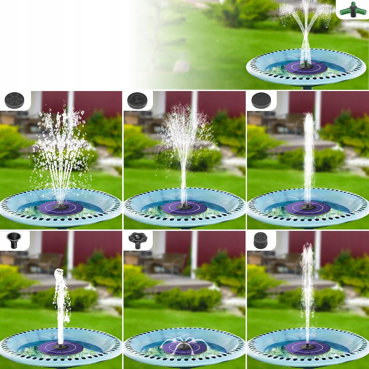 ⛲⛲ функція автоматичного комутації - Сонячний фонтан має захист від відсутності води, що ефективно продовжує термін експлуатації насоса. Якщо насос перестає працювати під час роботи, перевірте, чи є достатньо води чи вхід води насоса забита. 4 Птахи для птахів, ставка, водне поле, пташина ванна, купальник, все живе завдяки цьому фонтану сонячної енергії.