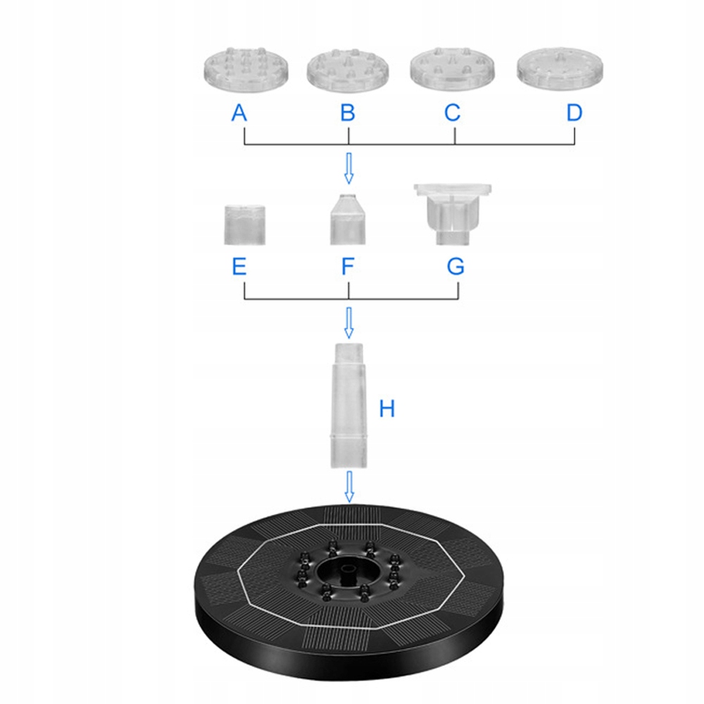 【6 Різні стилі водного потоку】 Сонячний фонтан для птахів має 6 форсунок для задоволення різних потреб з точки зору висоти та форми водного потоку. Максимальна висота водного потоку: 100 см, висота водного потоку буде змінюватися після з'єднання різних форсунок.