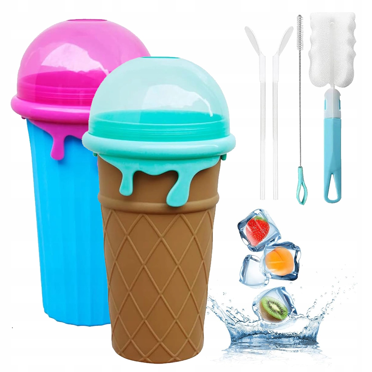 Діапазон доставки: Ви отримаєте 2 чашки для коктейлів (синій і коричневий), 2 столові ложки з соломою, 1 солом’яна щітка, 1 чистка щітка та 1 кольорова картонна упаковка. Влітку ви можете адаптувати смак морозива до своїх уподобань і створити власні творіння морозива, насолоджуючись усім процесом. Просто налийте улюблений напій і додайте інгредієнти, такі як фрукти, шоколад, горіхи та інші, щоб збагатити смак та харчову цінність. Стисніть напій і насолоджуйтесь смачним подрібненим льоду прямо з машини для виготовлення подрібнених чашок для льоду.