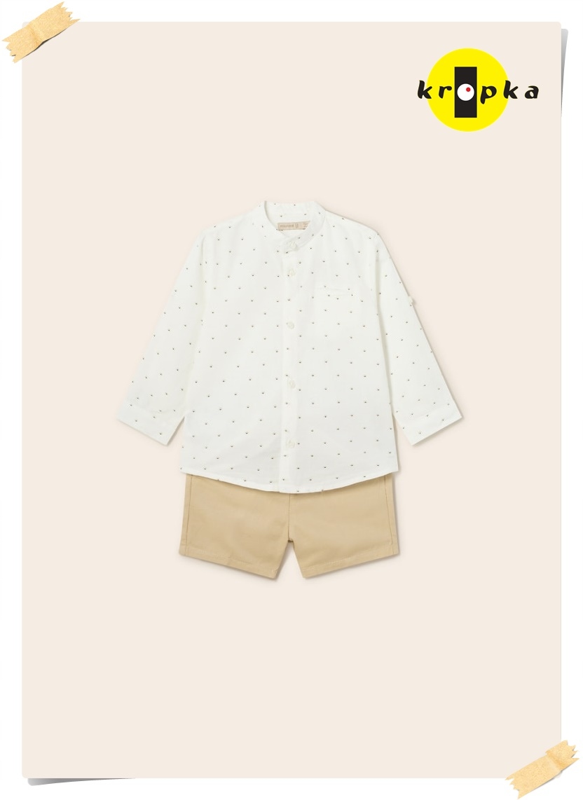 біла довга сорочка -сфери/має можливість регулювати довжину рукава/ + бежевих шортів