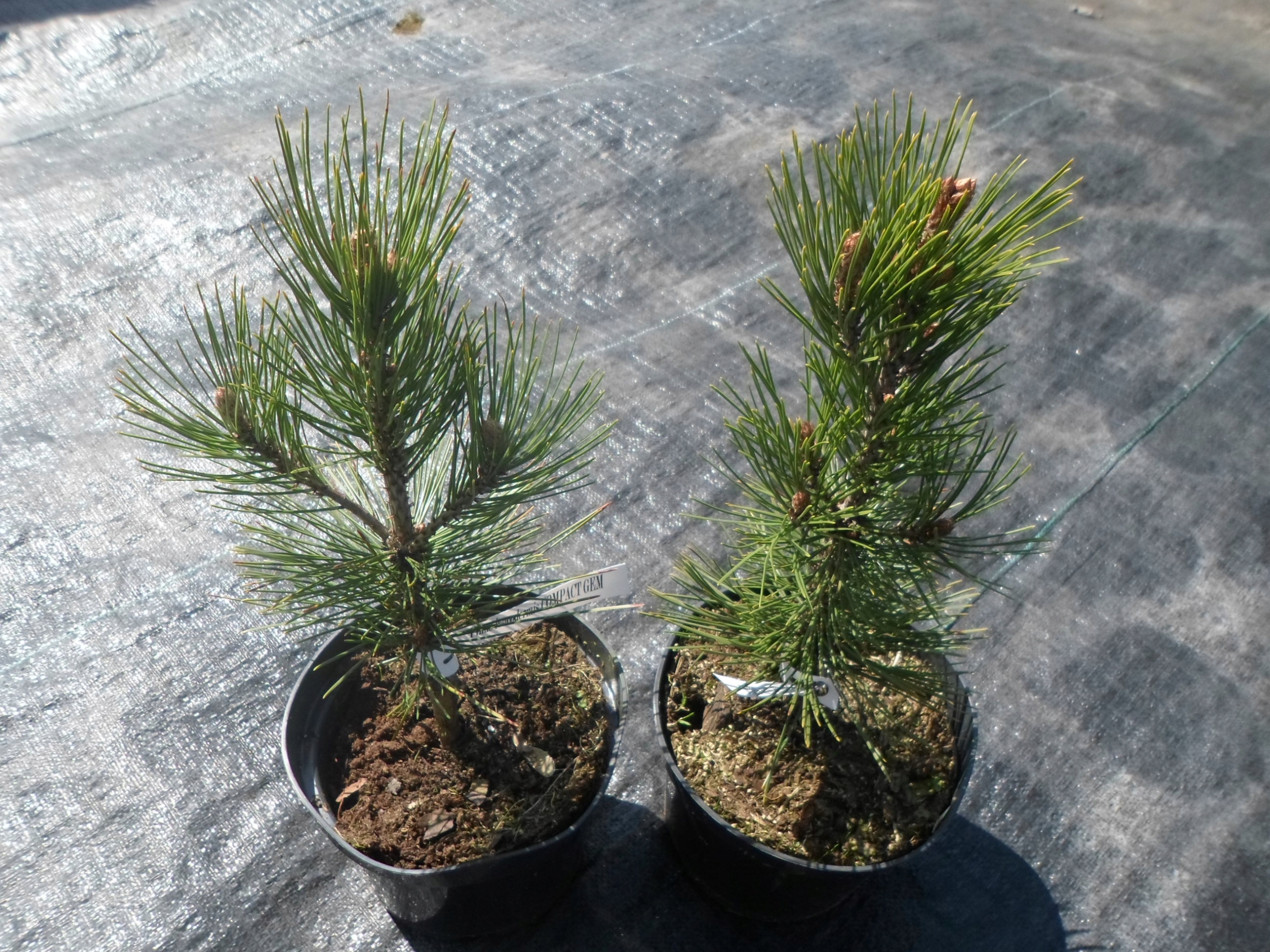 Додатковою прикрасою є рівномірно розташовані досить великі сліди від голки. Хвоя росте по дві в пучку і має таку ж довжину, як у виду. Хвоя інтенсивно-зелена, жорстка, гостро загострена, спірально і густо розташована навколо пагонів і спрямована до їх верхівок. Пагони нагадують щільні щітки для чищення пляшок. Хвоя живе близько 5 років. Після падіння вони залишають характерні сліди на корі. Шишки утворюються досить рано, вже через кілька років вирощування. Молоді шишки мають конічну форму і надзвичайно привабливий кобальтово-блакитний колір. Коли вони дозрівають, вони стають коричневими, висихають і розкриваються, випускаючи велике насіння.