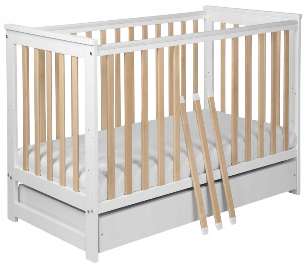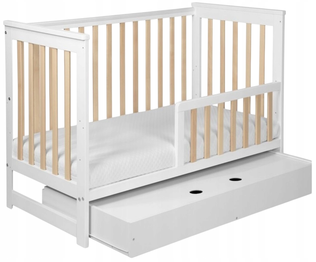 yonco - iwi дерев’яне ліжечко з ящиком та перилами białe -buk
