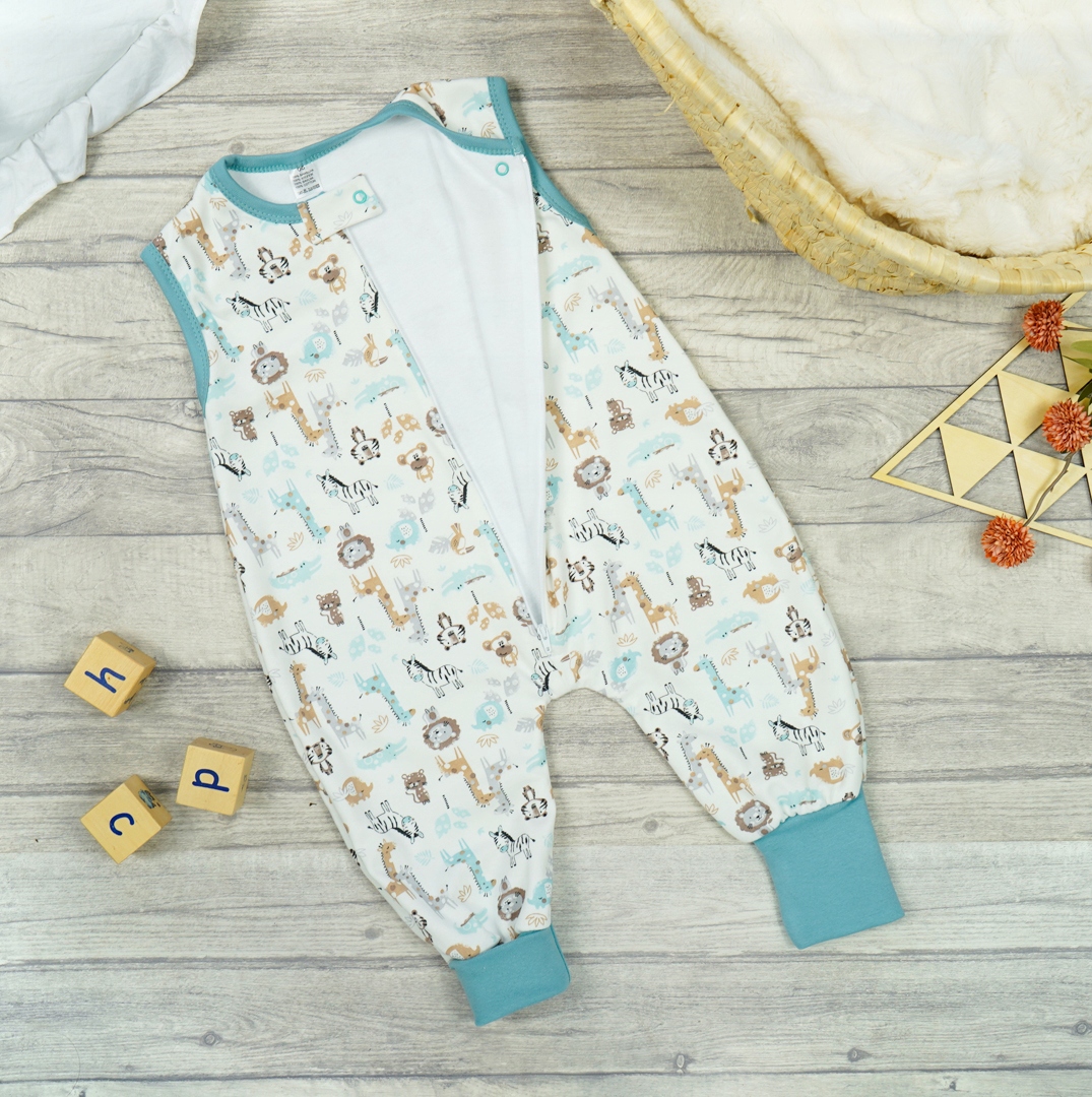 Зростаючий бавовняний спальник, який забезпечує комфорт і зручність рухів дитини під час сну. Застібається на блискавку і захисну пряжку з безнікелевою застібкою під шиєю. Виготовлена з двох шарів 100% бавовни, зовнішній колір екрю з принтом сафарі, внутрішній гладкий білий. Декольте і плечі оброблені зручними, не стискуючими обробками, які дозволяють комфортно одягнути вашу дитину під них. Ніжки спальника забезпечують свободу рухів ніжок, а можливість їх складання означає, що дитина не так швидко з них виростає.