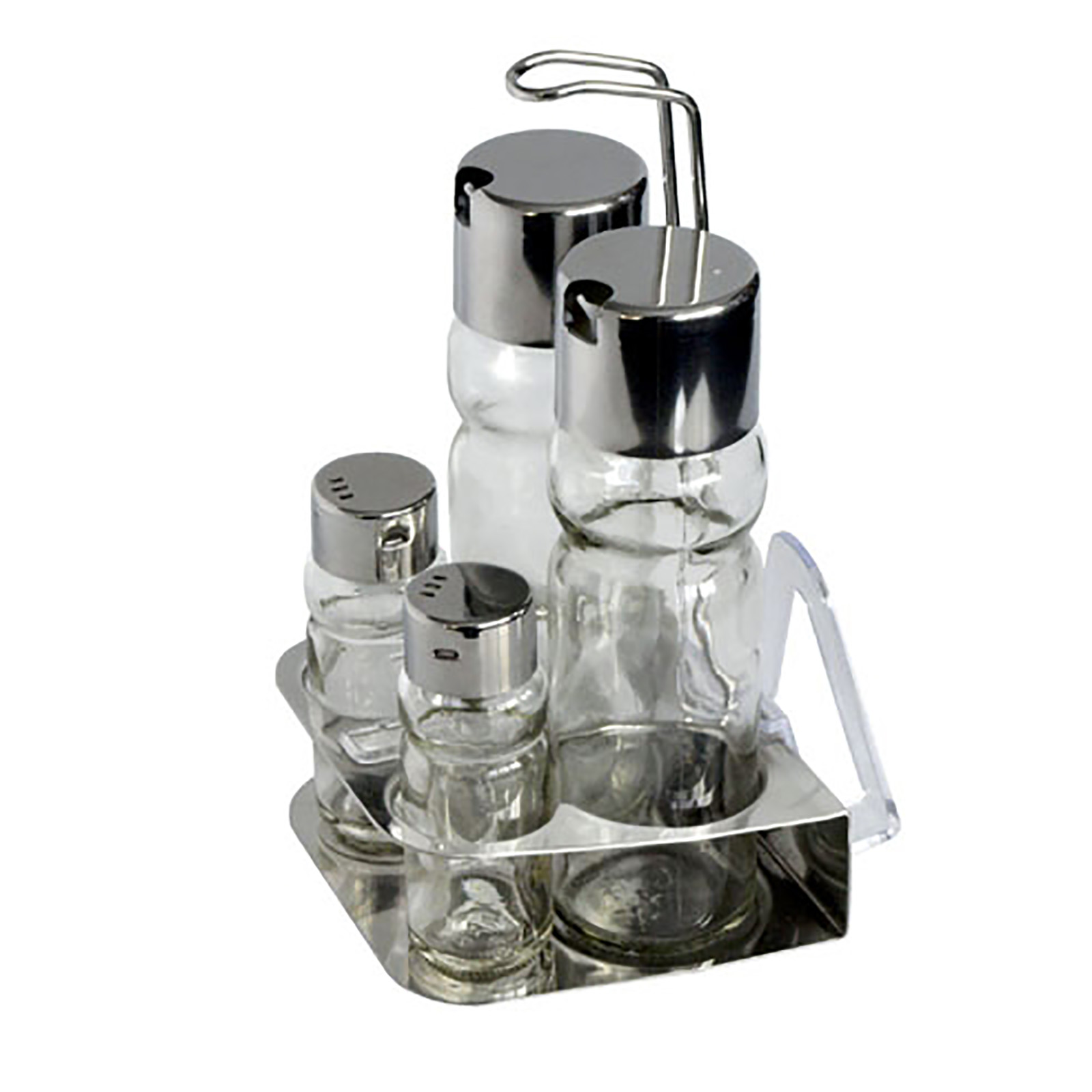 ✅ 4 скляна сіль, перець, оливкові та оцетні контейнери, зубочистки та власник серветки,